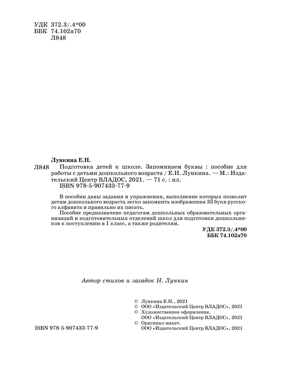 В пособии даны задания и упражнения, выполнение которых позволит детям дошкольного возраста легко запомнить изображения 33 букв русского алфавита и правильно их писать. Пособие предназначено педагогам дошкольных образовательных организаций и подготовительных отделений школ для подготовки дошкольников к поступлению в 1 класс, а также родителям.
