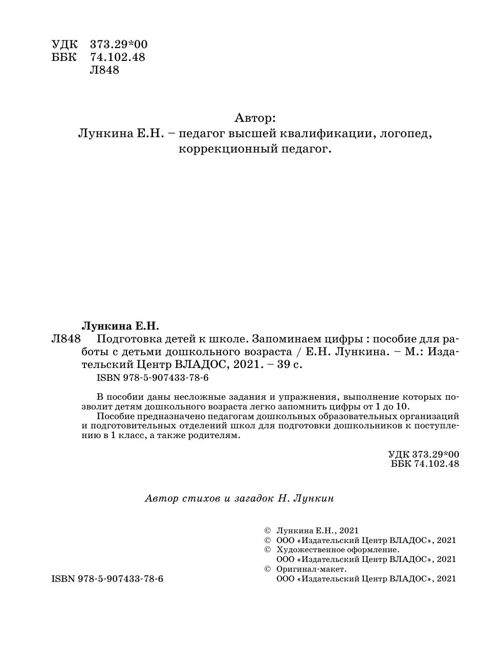 В пособии даны несложные задания и упражнения, выполнение которых позволит детям дошкольного возраста легко запомнить цифры от 1 до 10. Пособие предназначено педагогам дошкольных образовательных организаций и подготовительных отделений школ для подготовки дошкольников к поступлению в 1 класс, а также родителям.
