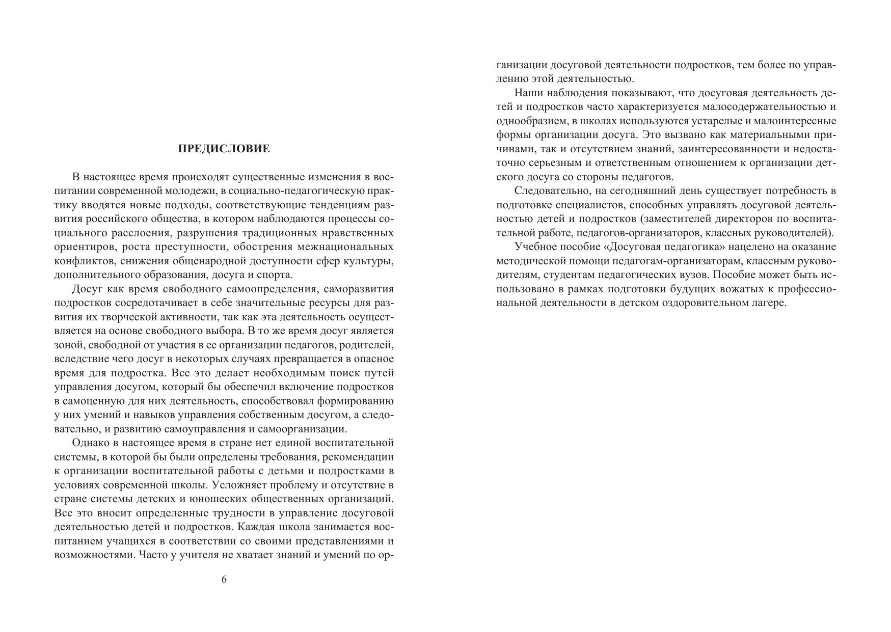В учебном пособии излагаются теоретические основы досуговой деятельности, методика организации и проведения различных досуговых мероприятий, вопросы организации совместной досуговой деятельности детей и родителей, методика подготовки и организации летнего досуга детей и подростков в детском оздоровительном лагере. Учебное пособие предназначено для студентов педагогических вузов, педагогов-организаторов, заместителей директоров по воспитательной работе, классных руководителей, вожатых и воспитателей детских оздоровительных лагерей.