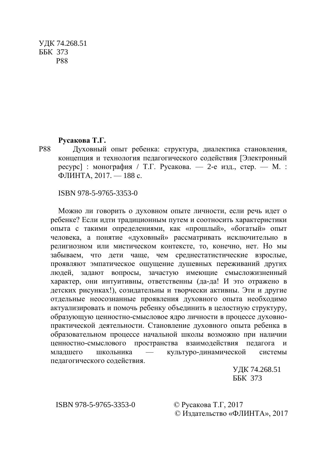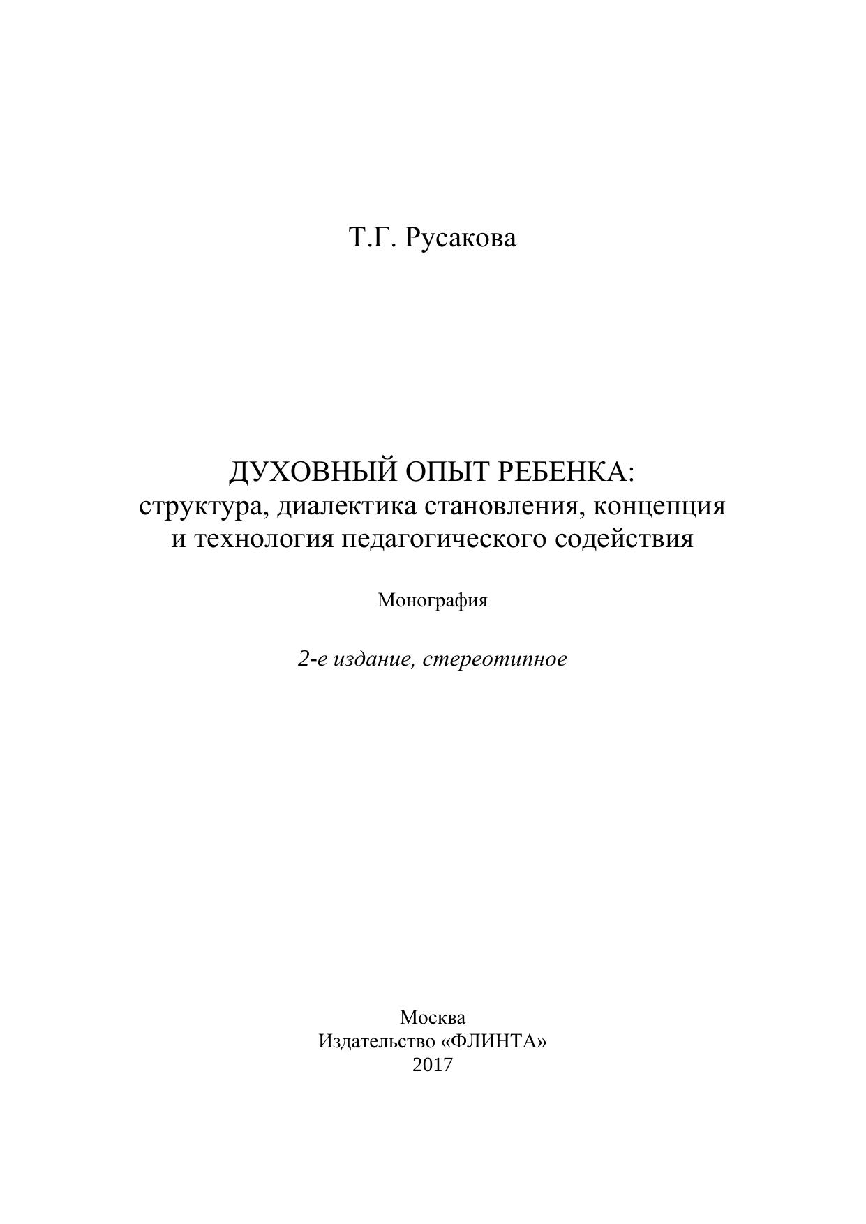 Духовный опыт ребенка: структура, диалектика становления, концепция и технология педагогического содействия: монография