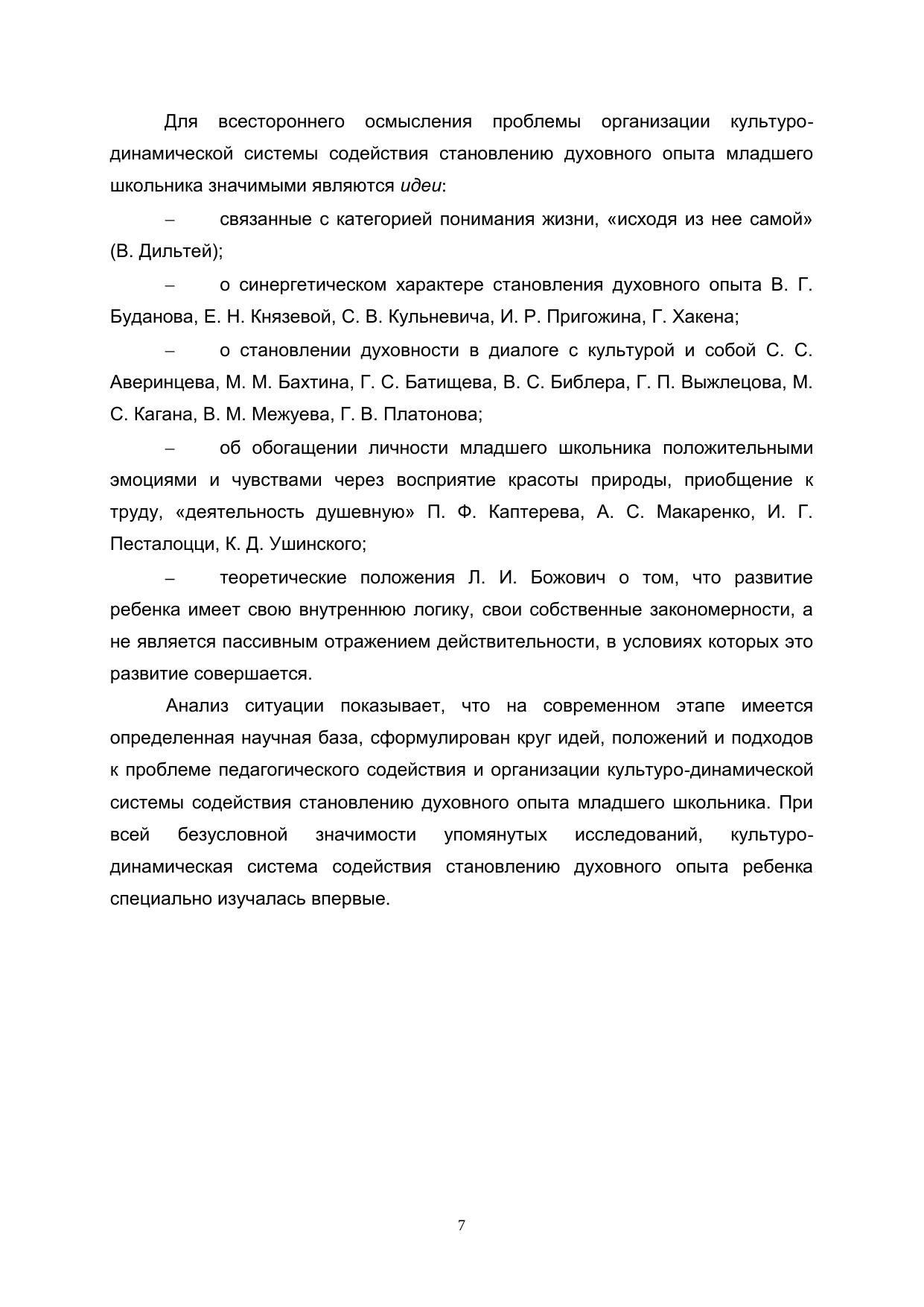 Можно ли говорить о духовном опыте личности, если речь идет о ребенке? Если идти традиционным путем и соотносить характеристики опыта с такими определениями, как «прошлый», «богатый» опыт человека, а понятие «духовный» рассматривать исключительно в религиозном или мистическом контексте, то, конечно, нет. Но мы забываем, что дети чаще, чем среднестатистические взрослые, проявляют эмпатическое ощущение душевных переживаний других людей, задают вопросы, зачастую имеющие смысложизненный характер, они интуитивны, ответственны (да-да! И это отражено в детских рисунках!), созидательны и творчески активны. Эти и другие отдельные неосознанные проявления духовного опыта необходимо актуализировать и помочь ребенку объединить в целостную структуру, образующую ценностно-смысловое ядро личности в процессе духовно-практической деятельности. Становление духовного опыта ребенка в образовательном процессе начальной школы возможно при наличии ценностно-смыслового пространства взаимодействия педагога и младшего школьника — культуро-динамической системы педагогического содействия.