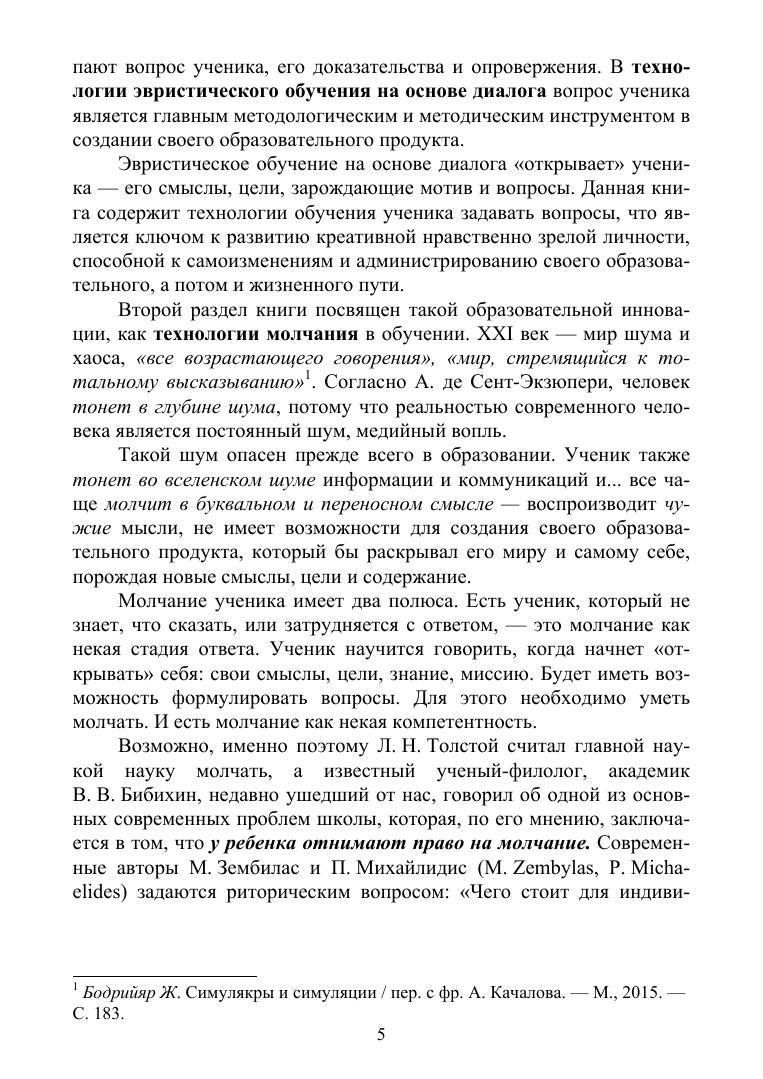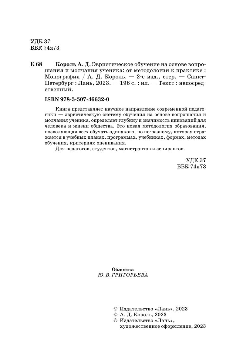 Книга представляет научное направление современной педагогики — эвристической системы обучения на основе вопрошания и молчания ученика, определяет глубину и значимость инноваций для человека и жизни общества. Это новая методология образования, позволяющая всех обучать одинаково, но по разному, которая отражается в учебных планах, программах, учебниках, формах, методах обучения, критериях оценивания. Для педагогов, студентов, магистрантов и аспирантов.