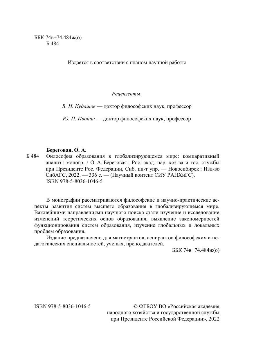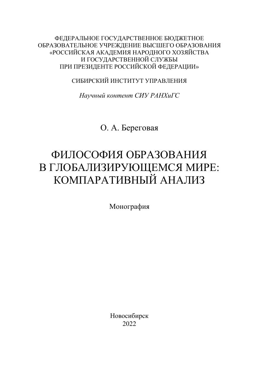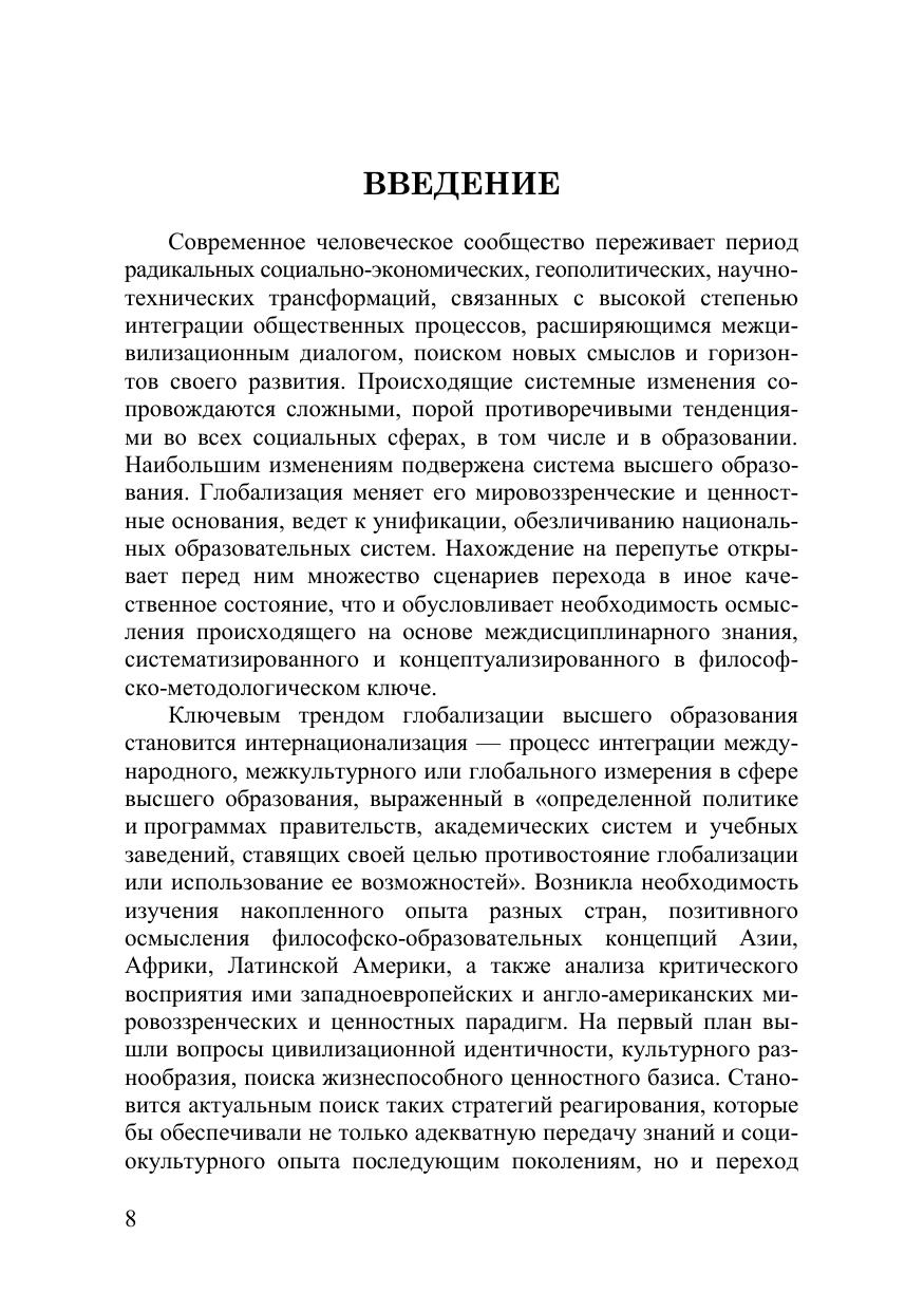 В монографии рассматриваются философские и научно-практические ас-пекты развития систем высшего образования в глобализирующемся мире. Важнейшими направлениями научного поиска стали изучение и исследование изменений теоретических основ образования, выявление закономерностей функционирования систем образования, изучение глобальных и локальных проблем образования. Издание предназначено для магистрантов, аспирантов философских и пе-дагогических специальностей, ученых, преподавателей.