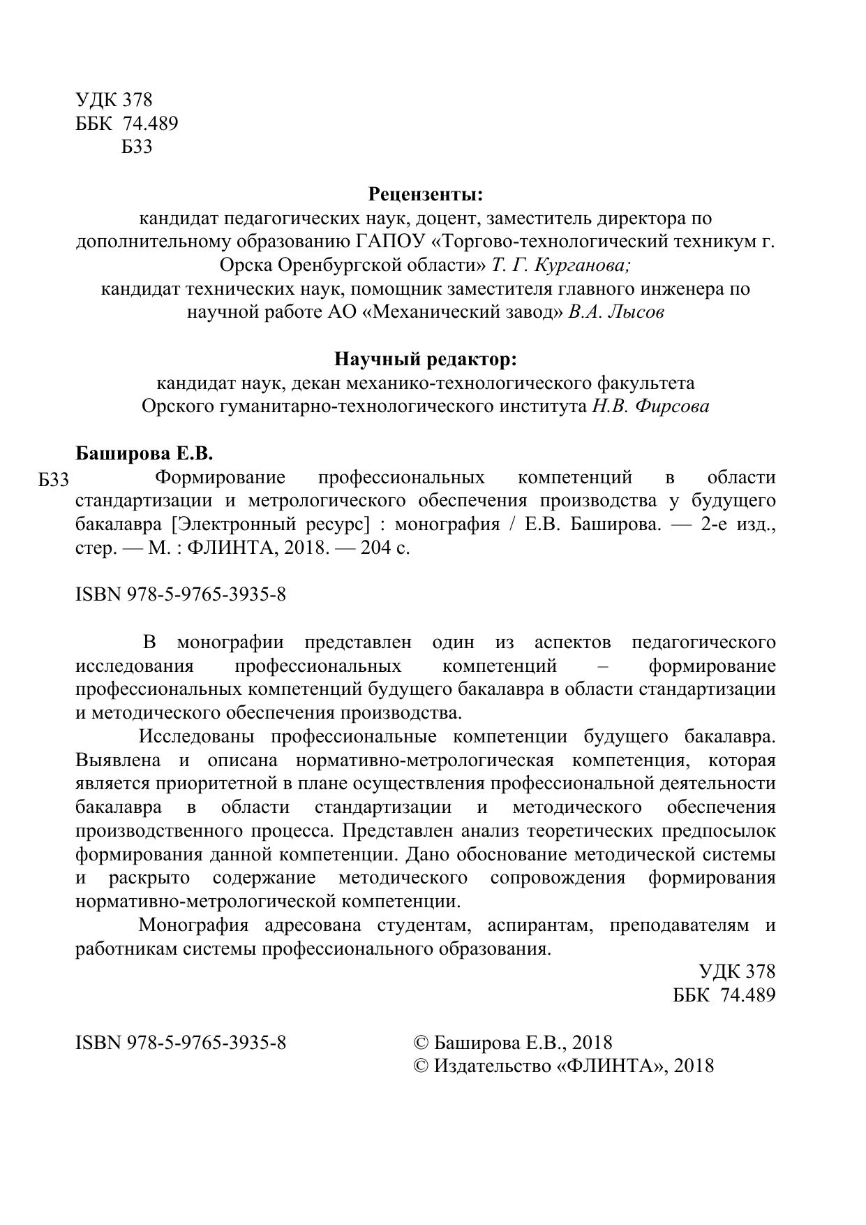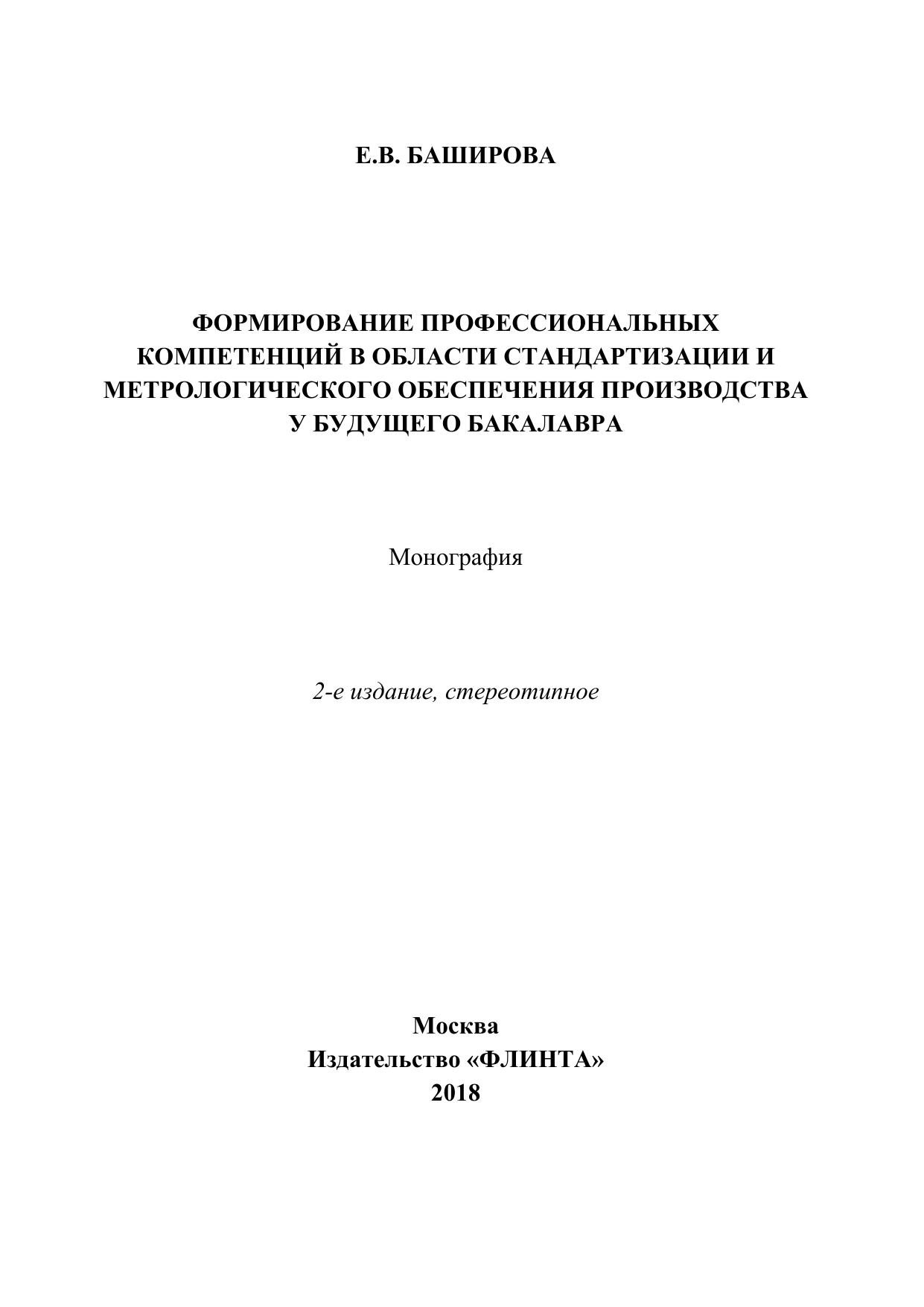 В монографии представлен один из аспектов педагогического исследования профессиональных компетенций – формирование профессиональных компетенций будущего бакалавра в области стандартизации и методического обеспечения производства.