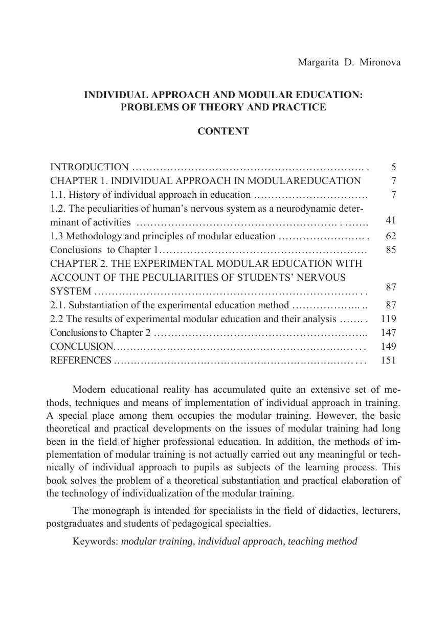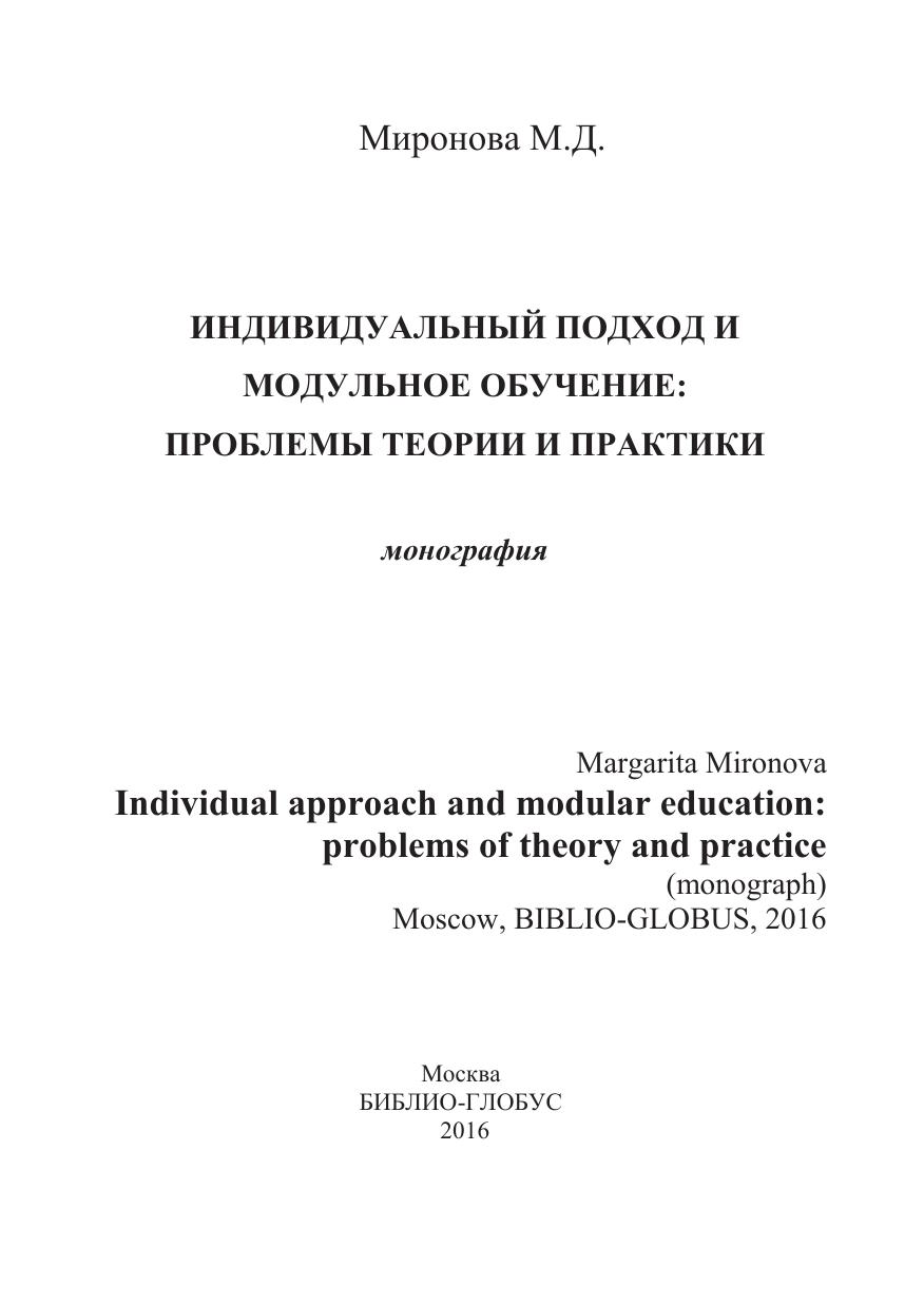 Индивидуальный подход и модульное обучение: проблемы теории и практики