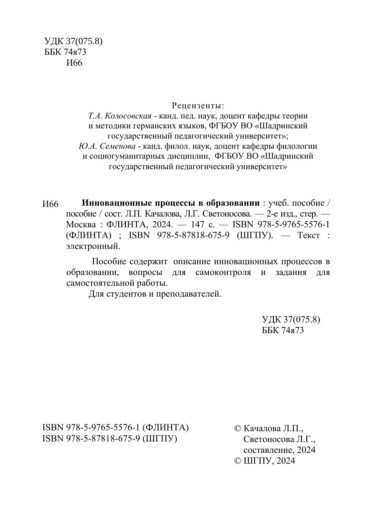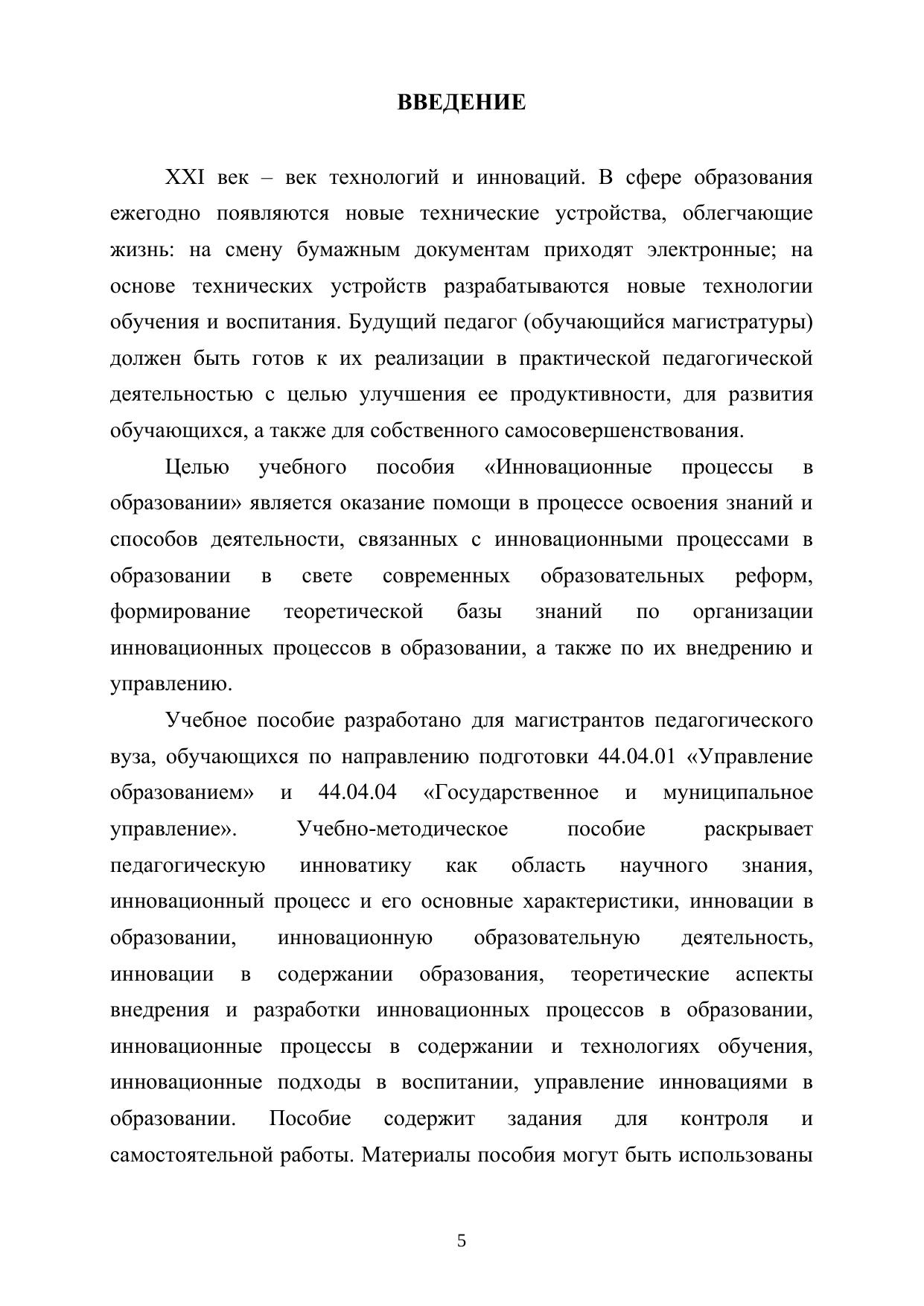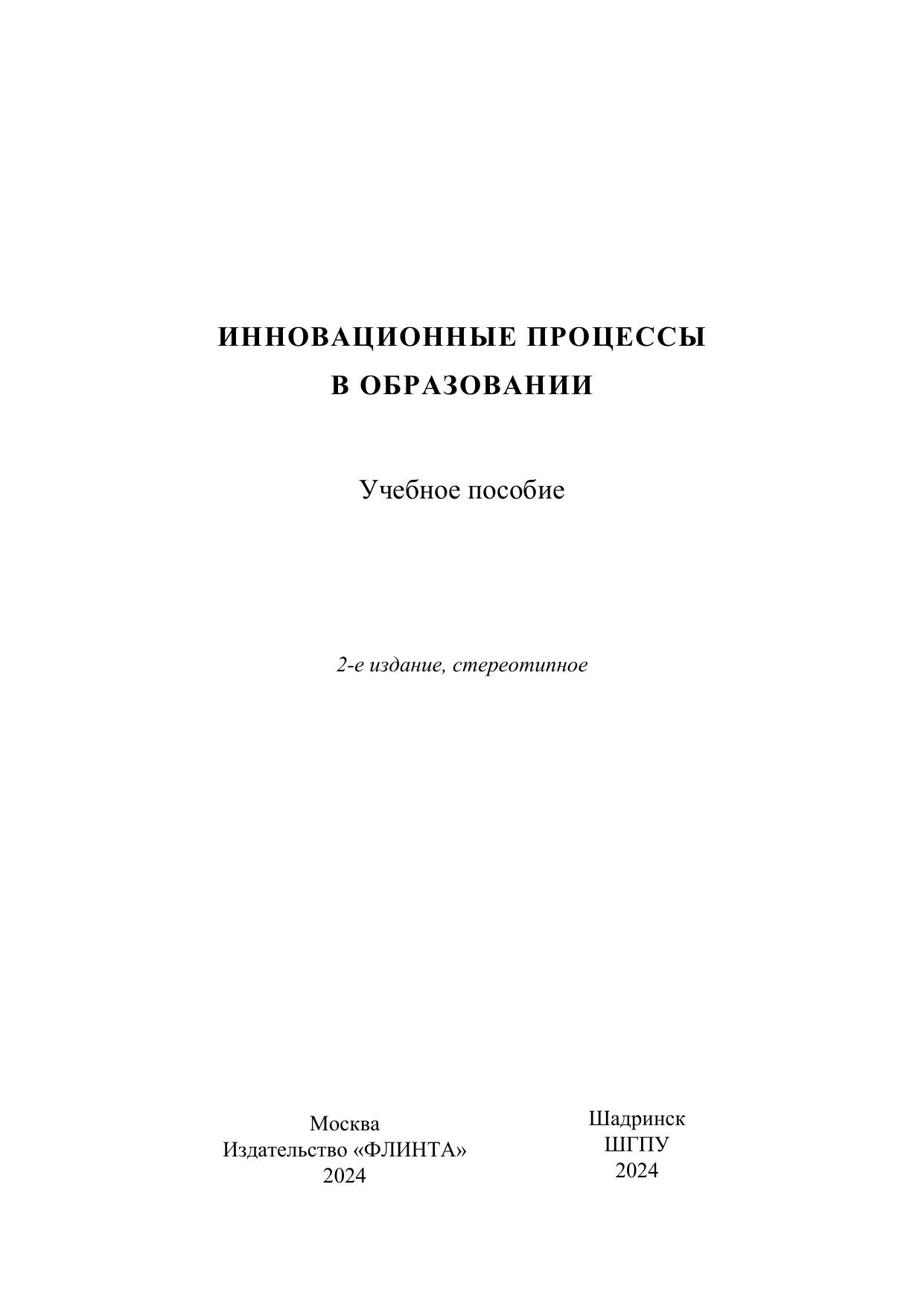 Пособие содержит описание инновационных процессов в образовании, вопросы для самоконтроля и задания для самостоятельной работы.