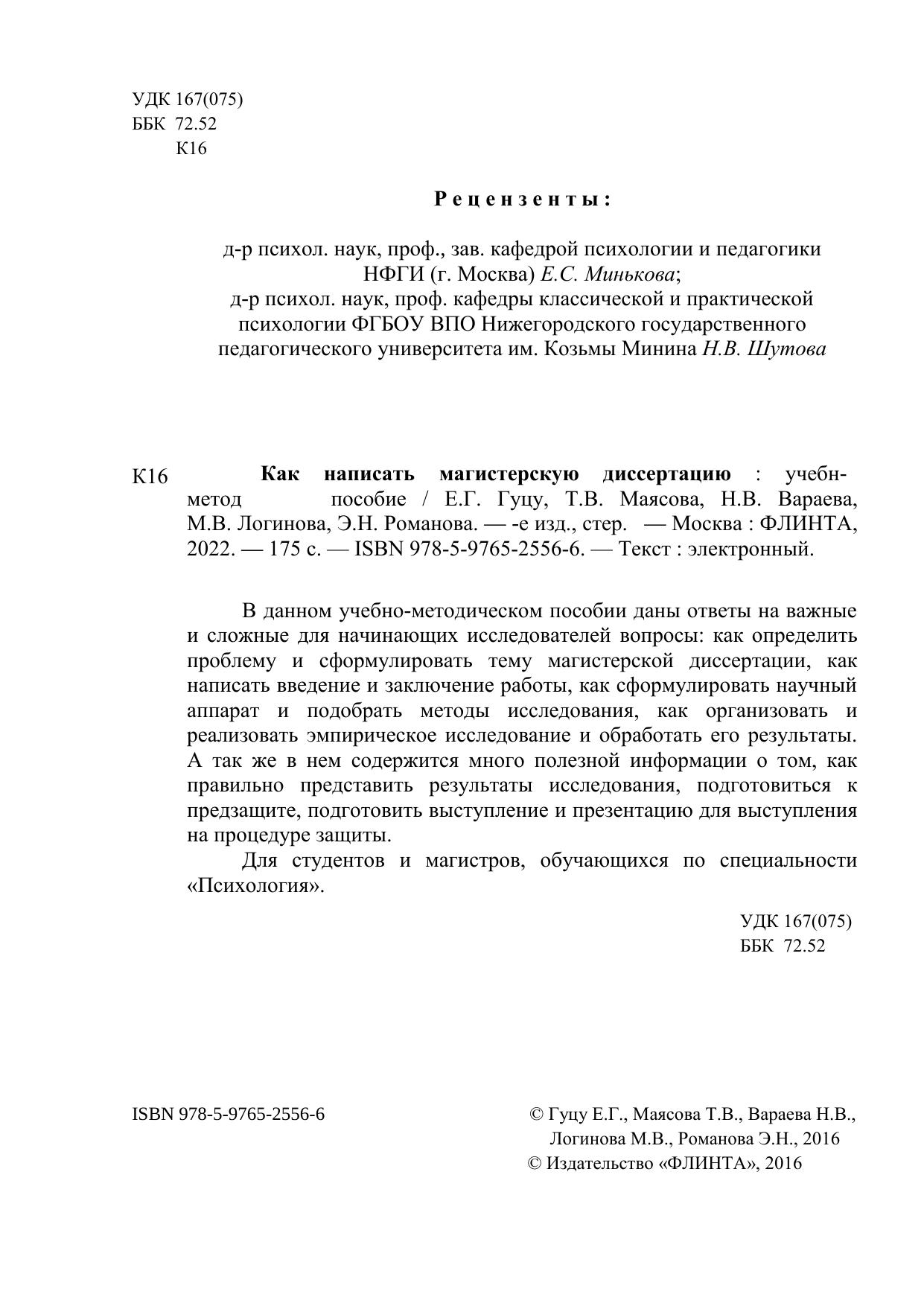 В данном учебно-методическом пособии даны ответы на важные и сложные для начинающих исследователей вопросы: как определить проблему и сформулировать тему магистерской диссертации, как написать введение и заключение работы, как сформулировать научный аппарат и подобрать методы исследования, как организовать и реализовать эмпирическое исследование и обработать его результаты. А так же в нем содержится много полезной информации о том, как правильно представить результаты исследования, подготовиться к предзащите, подготовить выступление и презентацию для выступления на процедуре защиты.