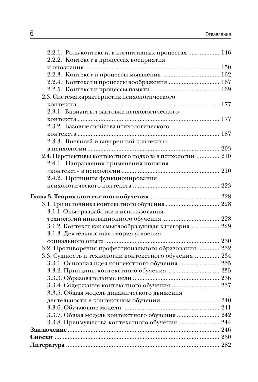 Рассматриваются сущность и различные аспекты понятия «контекст» в гуманитарных науках: лингвистике, психолингвистике, психологии и педагогике. Обосновывается необходимость введения этого смыслообразующего понятия в категориальный строй психологической и педагогической науки. Представлена сущность теории и технологий контекстного обучения. Для специалистов в области психологии и педагогі практиков образования, занимающихся повышением его качества. Может использоваться в системе подготовки, повышения квалификации и переподготовки кадров гуманитарного профиля.