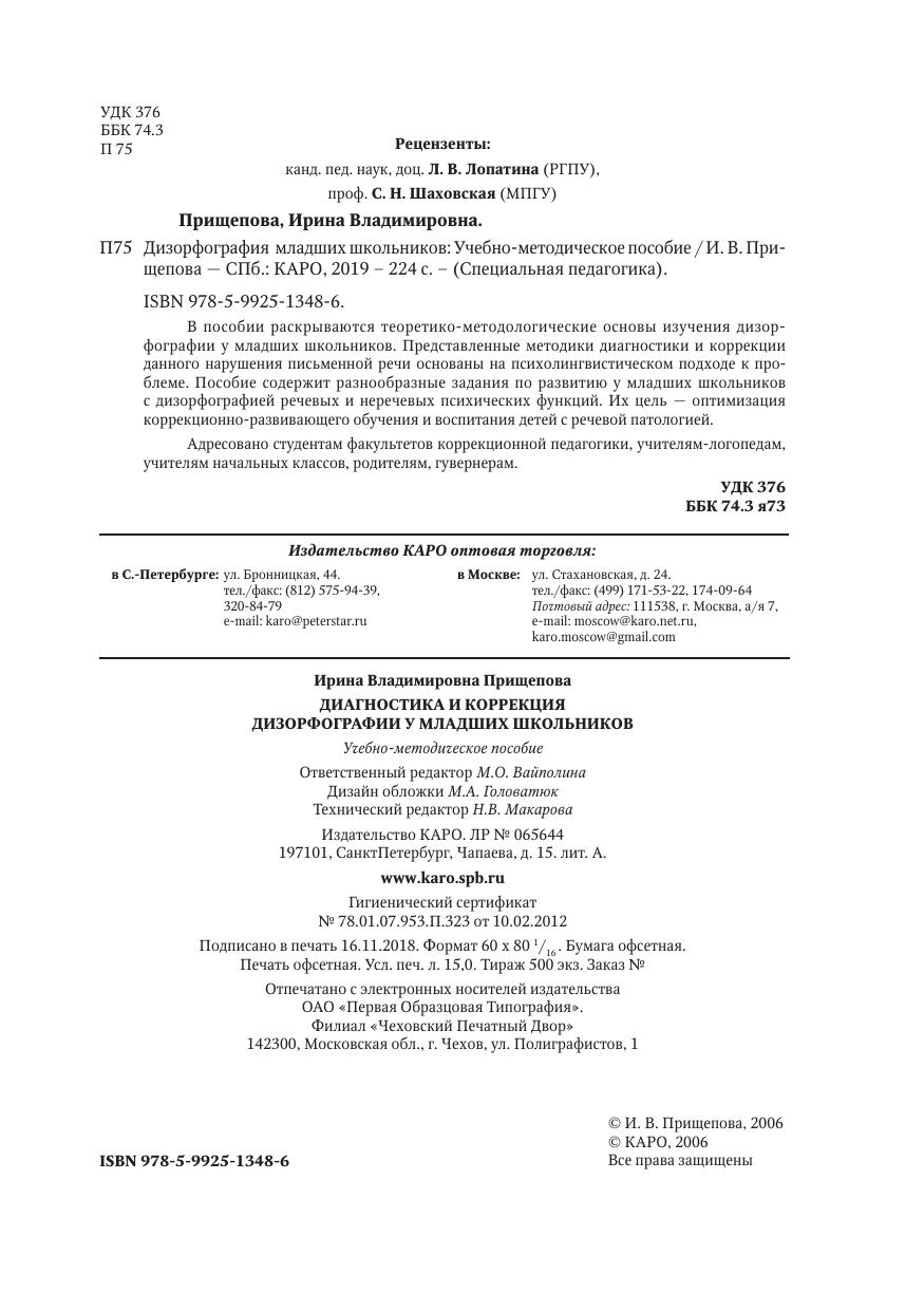 В пособии раскрываются теоретико-методологические основы изучения дизорфографии у младших школьников. Представленные методики диагностики и коррекции данного нарушения письменной речи основаны на психолингвистическом подходе к проблеме. Пособие содержит разнообразные задания по развитию у млад ших школьников с дизорфографией речевых и неречевых психических функций. Их цель — оптимизация коррекционно-развивающего обучения и воспитания детей с речевой патологией. Адресовано студентам факультетов коррекционной педагогики, учителям-логопедам, учителям начальных классов, родителям, гувернерам.