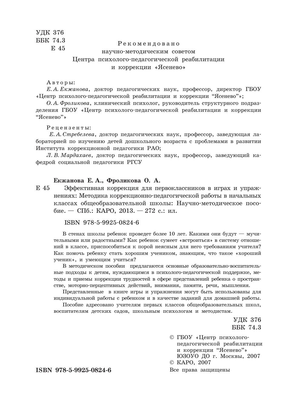 Эффективная коррекция для первоклассников в играх и упражнениях: Методика коррекционно-педагогической работы в начальных классах общеобразовательной школы