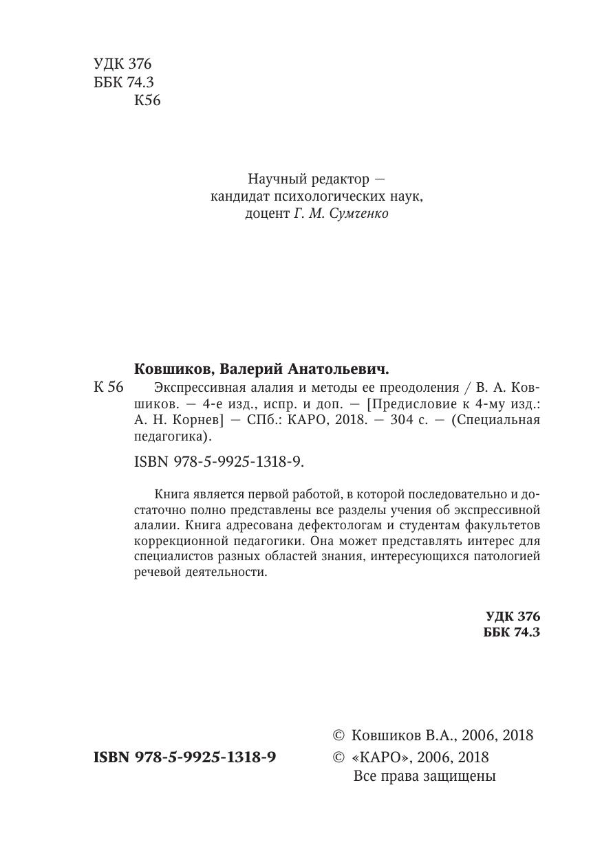 Книга является первой работой, в которой последовательно и достаточно полно представлены все разделы учения об экспрессивной алалии. Книга адресована дефектологам и студентам факультетов коррекционной педагогики. Она может представлять интерес для специалистов разных областей знания, интересующихся патологией речевой деятельности.