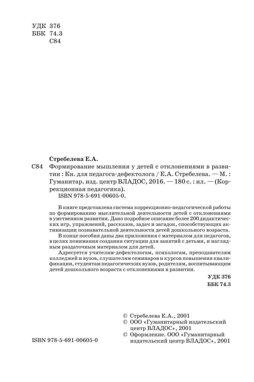 В книге представлена система коррекционно-педагогической работы по формированию мыслительной деятельности детей с отклонениями в умственном развитии. Дано подробное описание более 200 дидактических игр, упражнений, рассказов, задач и загадок, способствующих активизации познавательной деятельности детей дошкольного возраста. В конце пособия даны два приложения с материалом для педагогов, в целях понимания создания ситуации для занятий с детьми, и наглядным раздаточным материалом для детей. Адресуется учителям-дефектологам, психологам, преподавателям колледжей и вузов, слушателям семинаров и курсов повышения квалификации, студентам педагогических вузов, родителям, воспитывающим детей дошкольного возраста с отклонениями в развитии.