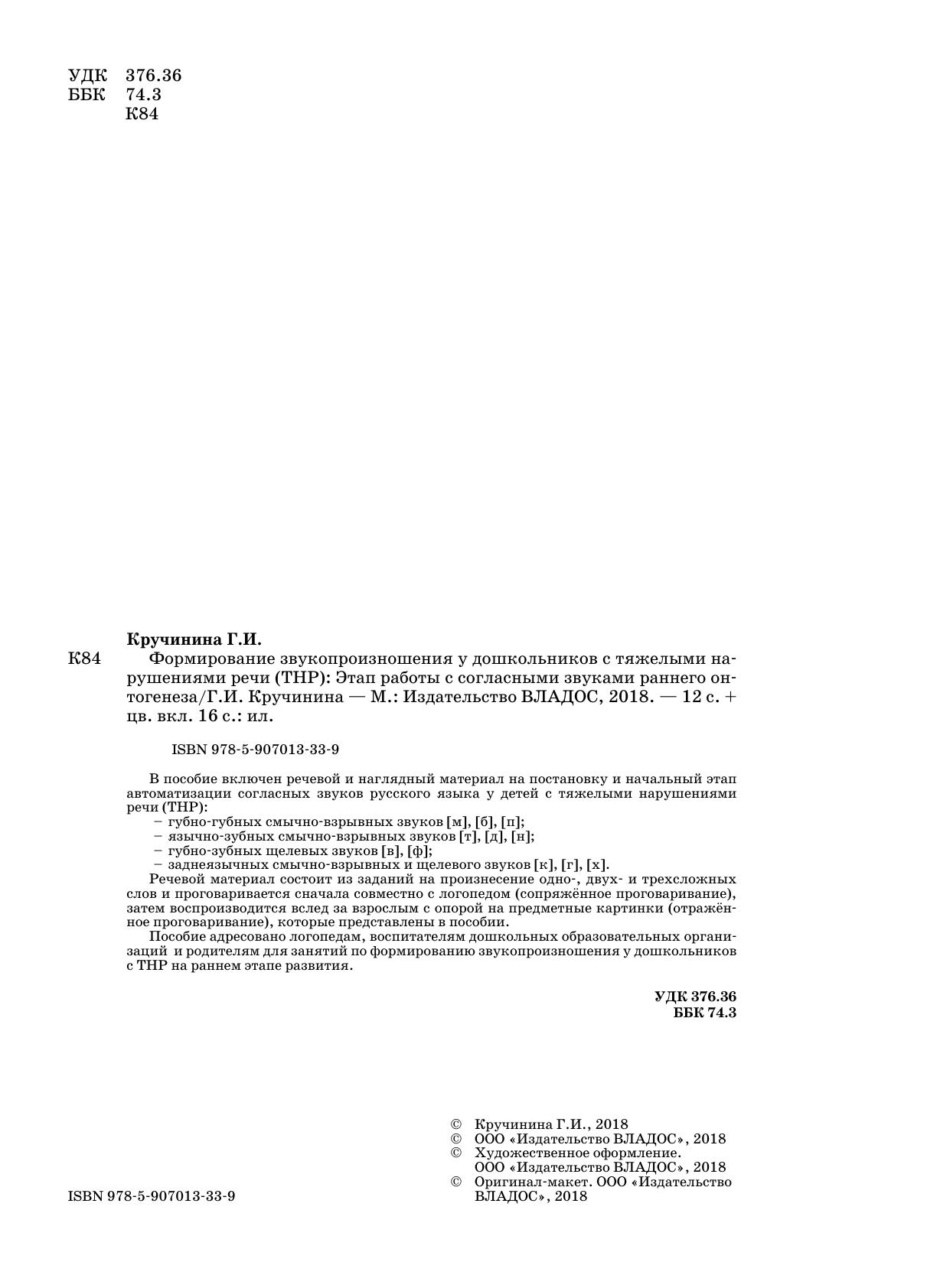 В пособие включен речевой и наглядный материал на постановку и начальный этап автоматизации согласных звуков русского языка у детей с тяжелыми нарушениями речи (ТНР):