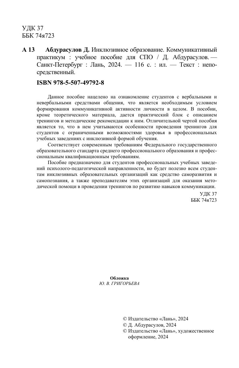 Данное пособие нацелено на ознакомление студентов с вербальными и невербальными средствами общения, что является необходимым условием формирования коммуникативной активности личности в целом. В пособии, кроме теоретического материала, дается практический блок с описанием тренингов и методические рекомендации к ним. Отличительной чертой пособия является то, что в нем учитываются особенности проведения тренингов для студентов с ограниченными возможностями здоровья в профессиональных учебных заведениях с инклюзивной формой обучения. Соответствует современным требованиям Федерального государственного образовательного стандарта среднего профессионального образования и профессиональным квалификационным требованиям. Пособие предназначено для студентов профессиональных учебных заведений психолого-педагогической направленности, но будет полезно всем студентам инклюзивных образовательных организаций как средство саморазвития и самопознания, а также преподавателям этих организаций для оказания методической помощи в проведении тренингов по развитию навыков коммуникации.
