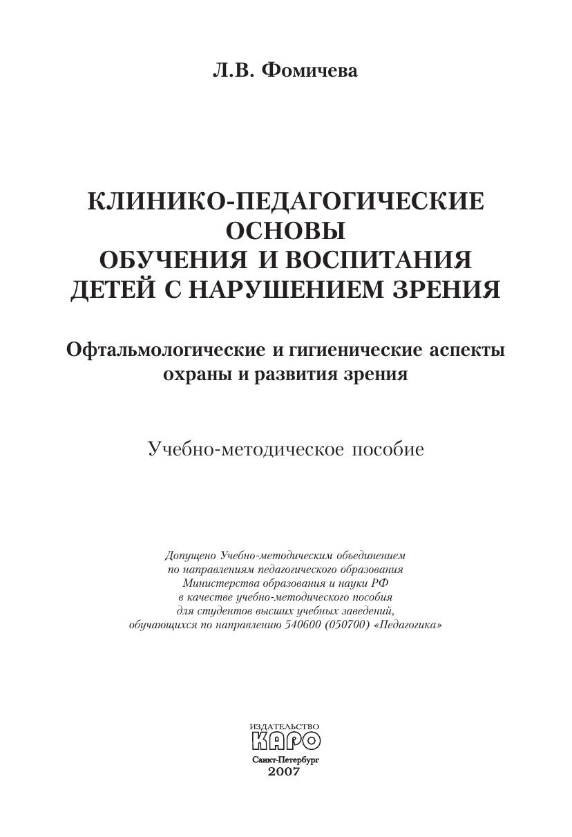 Клинико-педагогические основы обучения и воспитания детей с нарушением зрения: Офтальмологические и гигиенические аспекты охраны и развития зрения: Учебно-методическое пособие