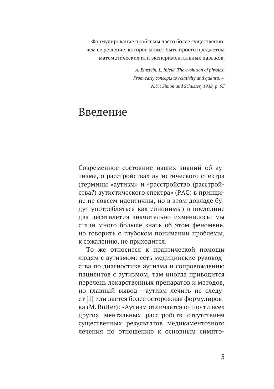 Рассмотрены современные представления о клинико-психологической структуре и патогенезе расстройств аутистического спектра, актуальные проблемы эпидемиологии и систематики РАС, пути формирования новой концепции аутизма, связанные с этим вопросы стратегии коррекционной работы и новые направления экологии.