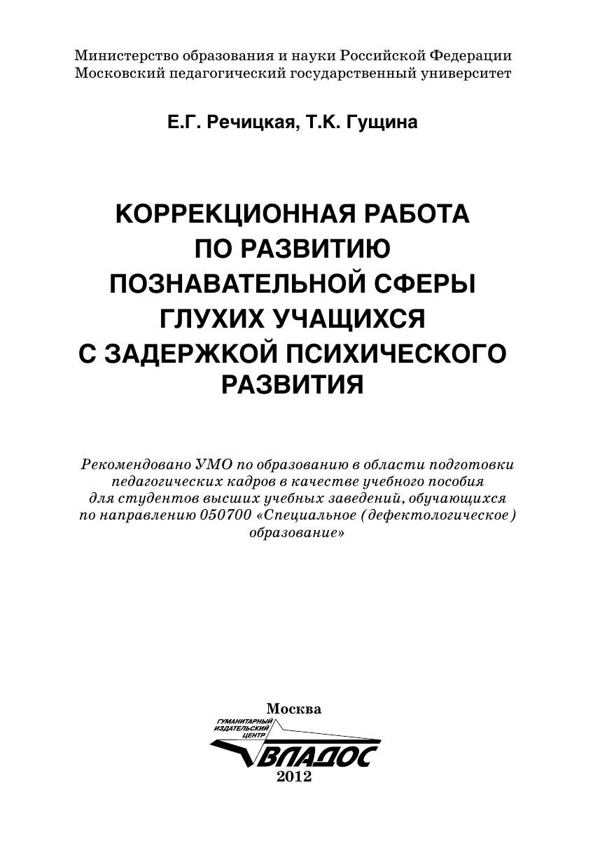 Коррекционная работа по развитию познавательной сферы глухих учащихся с задержкой психического развития