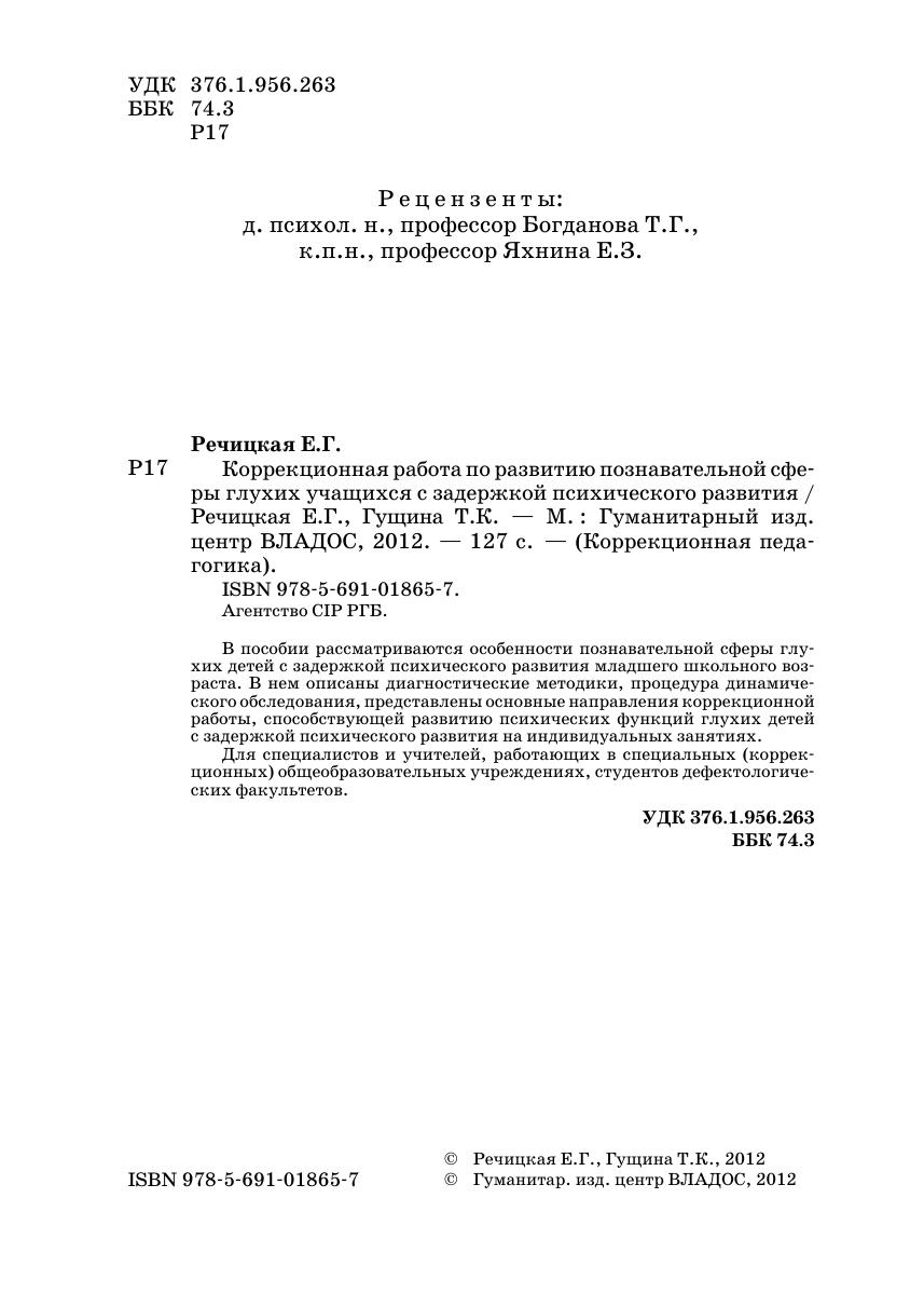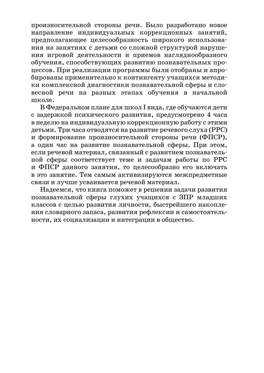 В пособии рассматриваются особенности познавательной сферы глухих детей с задержкой психического развития младшего школьного возраста. В нем описаны диагностические методики, процедура динамического обследования, представлены основные направления коррекционной работы, способствующей развитию психических функций глухих детей с задержкой психического развития на индивидуальных занятиях.