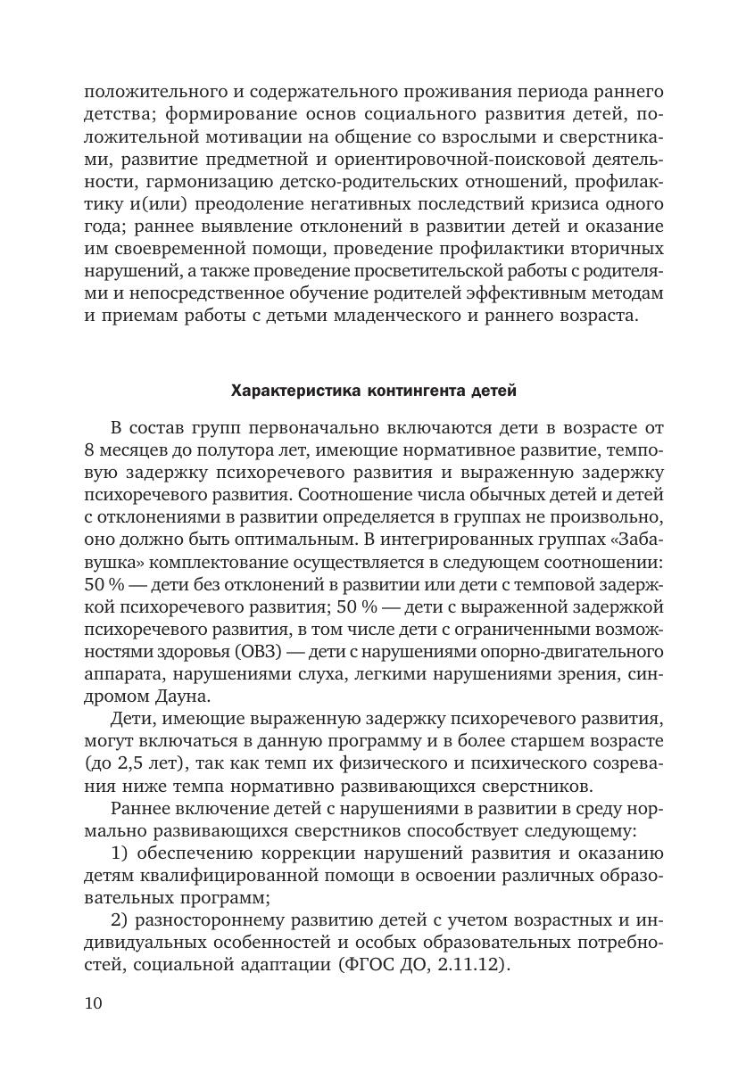 Методическое пособие посвящено работе с детьми раннего возраста в возрасте от 8 месяцев до 2 лет. В соответствии с Федеральным государственным стандартом дошкольного образования в нем раскрыты целевые, содержательные и организационные аспекты, наполнены содержанием все пять предметных областей, заложены критерии для стартовой и текущей диагностики, описаны ожидаемые результаты воспитательно-образовательной работы с детьми, имеющими разный