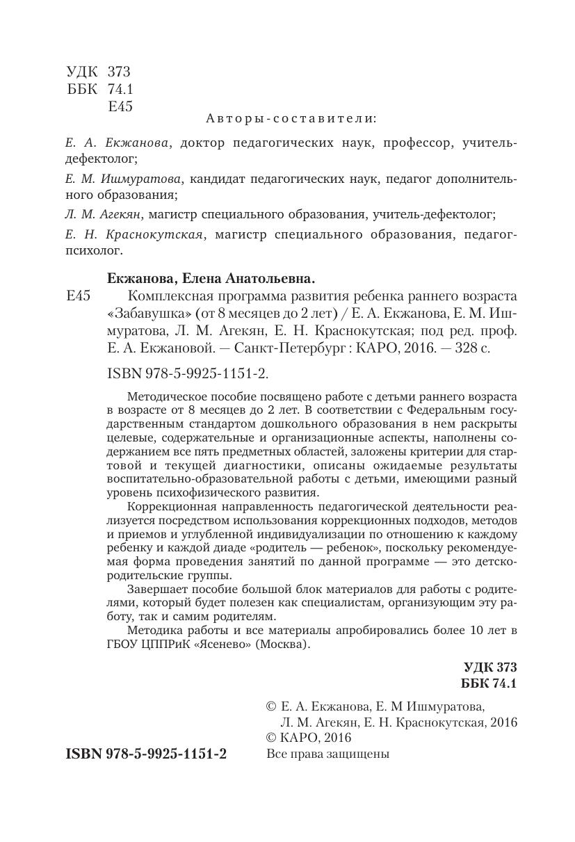 Комплексная программа развития ребенка раннего возраста «Забавушка» (от 8 месяцев до 2 лет)