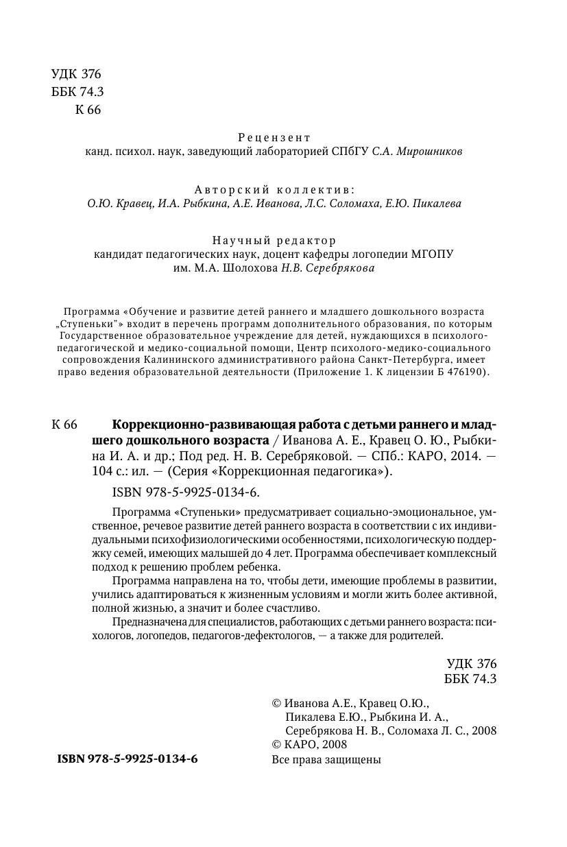 Предназначена для специалистов, работающих с детьми раннего возраста: психологов, логопедов, педагогов-дефектологов, — а также для родителей.