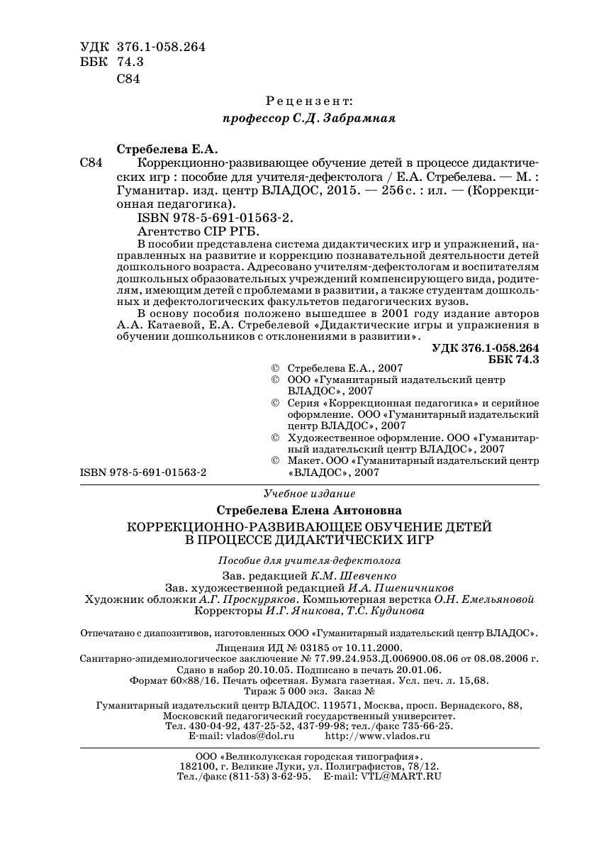 В основу пособия положено вышедшее в 2001 году издание авторов А.А. Катаевой, Е.А. Стребелевой «Дидактические игры и упражнения в обучении дошкольников с отклонениями в развитии».