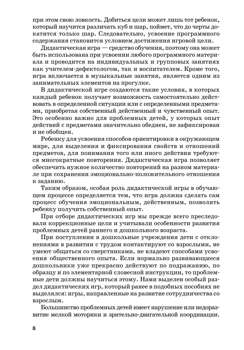 В пособии представлена система дидактических игр и упражнений, направленных на развитие и коррекцию познавательной деятельности детей дошкольного возрас та. Адресовано учителям-дефектологам и воспитателям дошкольных образовательных учреждений компенсирующего вида, родителям, имеющим детей с проблемами в развитии, а также студентам дошкольных и дефектологических факультетов педагогических вузов.