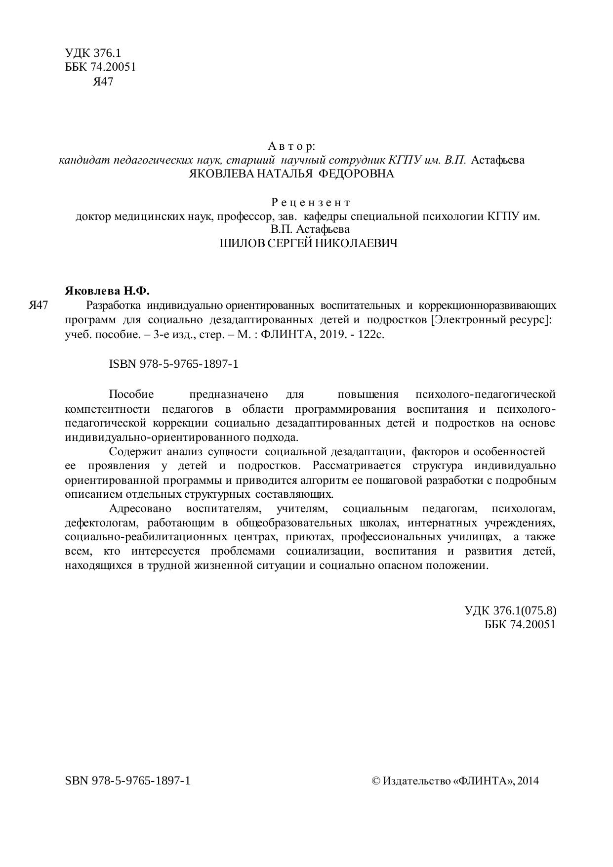Содержит анализ сущности социальной дезадаптации, факторов и особенностей ее проявления у детей и подростков. Рассматривается структура индивидуально ориентированной программы и приводится алгоритм ее пошаговой разработки с подробным описанием отдельных структурных составляющих.