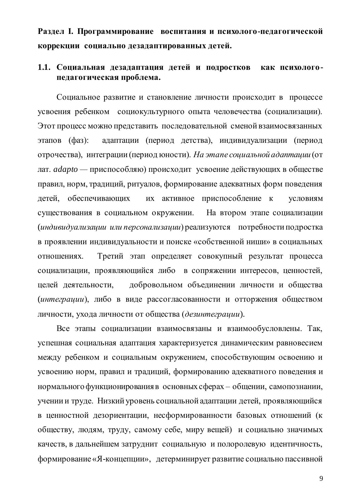 Разработка индивидуально ориентированных воспитательных и коррекционноразвивающих программ для социально дезадаптированных детей и подростков