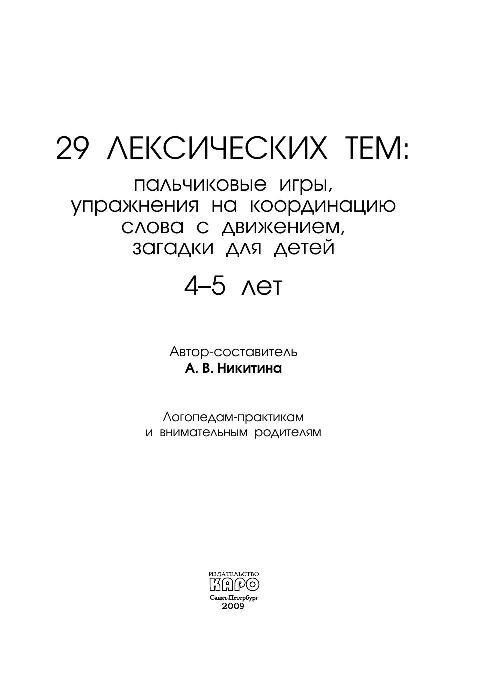 29 лексических тем. Пальчиковые игры, упражнения на координацию слова с движением, загадки для детей (4–5 лет)