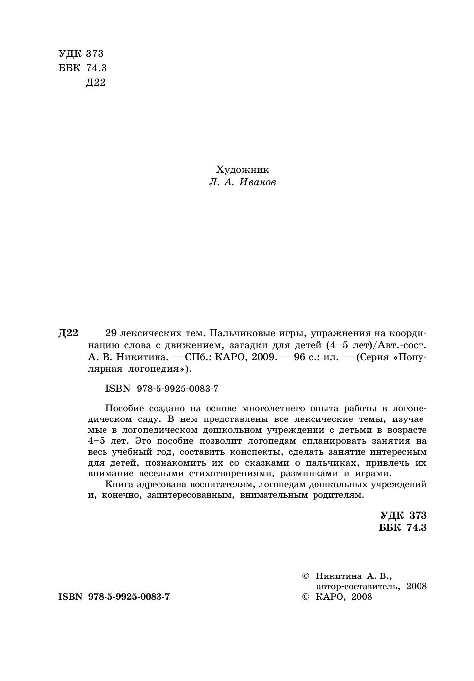 Книга адресована воспитателям, логопедам дошкольных учреждений и, конечно, заинтересованным, внимательным родителям.