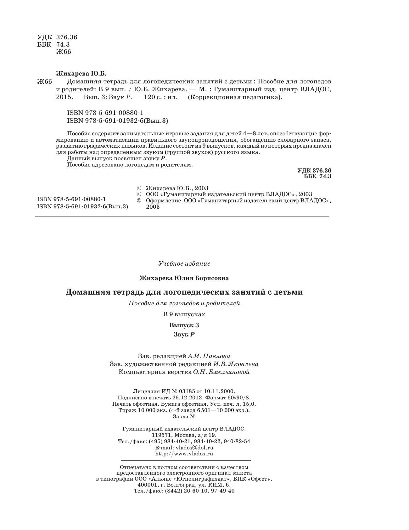 Издательство: ООО «Издательский Центр ВЛАДОС»