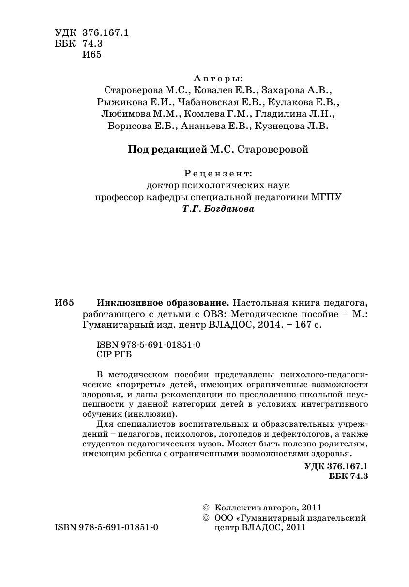 Инклюзивное образование. Настольная книга педагога, работающего с детьми с ОВЗ: Методическое пособие