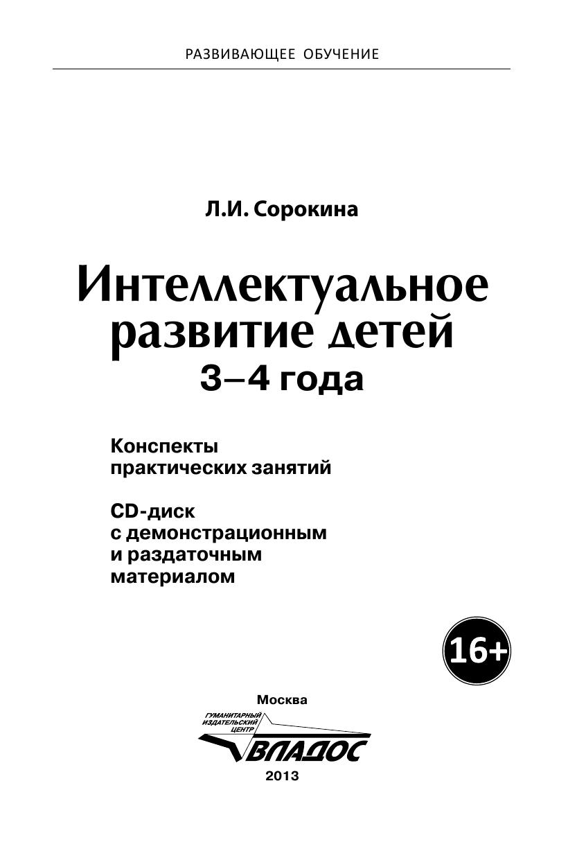 Интеллектуальное развитие детей, 3–4 года: конспекты практических занятий