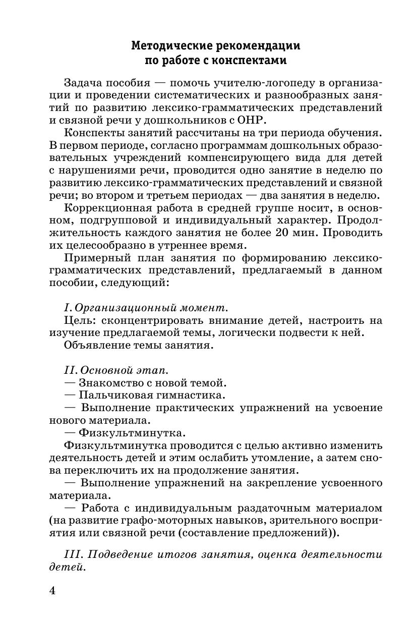 В пособии представлены конспекты занятий по формированию лексико-грамматических средств языка и связной речи у детей с ОНР для средней группы детского сада. Книга включает в себя методические рекомендации, примерное понедельное тематическое планирование занятий на каждый период обучения в средней группе детского сада (которое специалисты могут взять его за основу в своей работе). Работа по данным конспектам позволит обобщить и систематизировать знания детей, обогатить их словарный запас, помочь усвоить грамматические категории, развить связную речь, память, внимание, мышление, зрительное, слуховое, пространственное восприятие, а также общую и мелкую моторику, графо-моторные навыки. Пособие адресовано логопедам и воспитателям логопедических групп и детских садов.