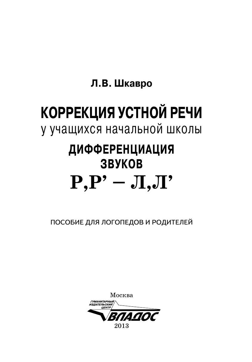 Коррекция устрой речи у учащихся начальной школы. Дифференциация звуков Р, Р’ — Л, Л’ : пособие для логопедов и родителей