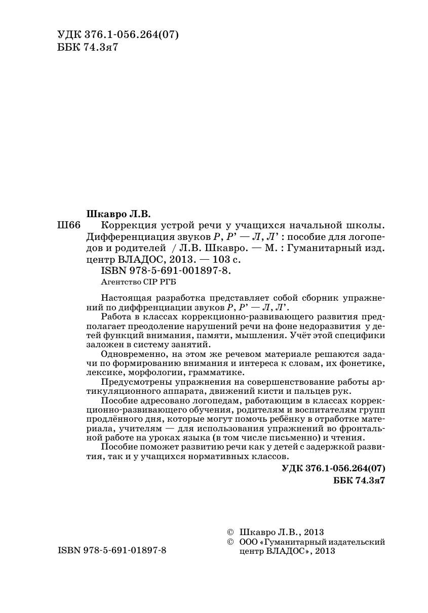 Пособие адресовано логопедам, работающим в классах коррекционно-развивающего обучения, родителям и воспитателям групп продлённого дня, которые могут помочь ребёнку в отработке материала, учителям — для использования упражнений во фронтальной работе на уроках языка (в том числе письменно) и чтения. Пособие поможет развитию речи как у детей с задержкой развития, так и у учащихся нормативных классов.