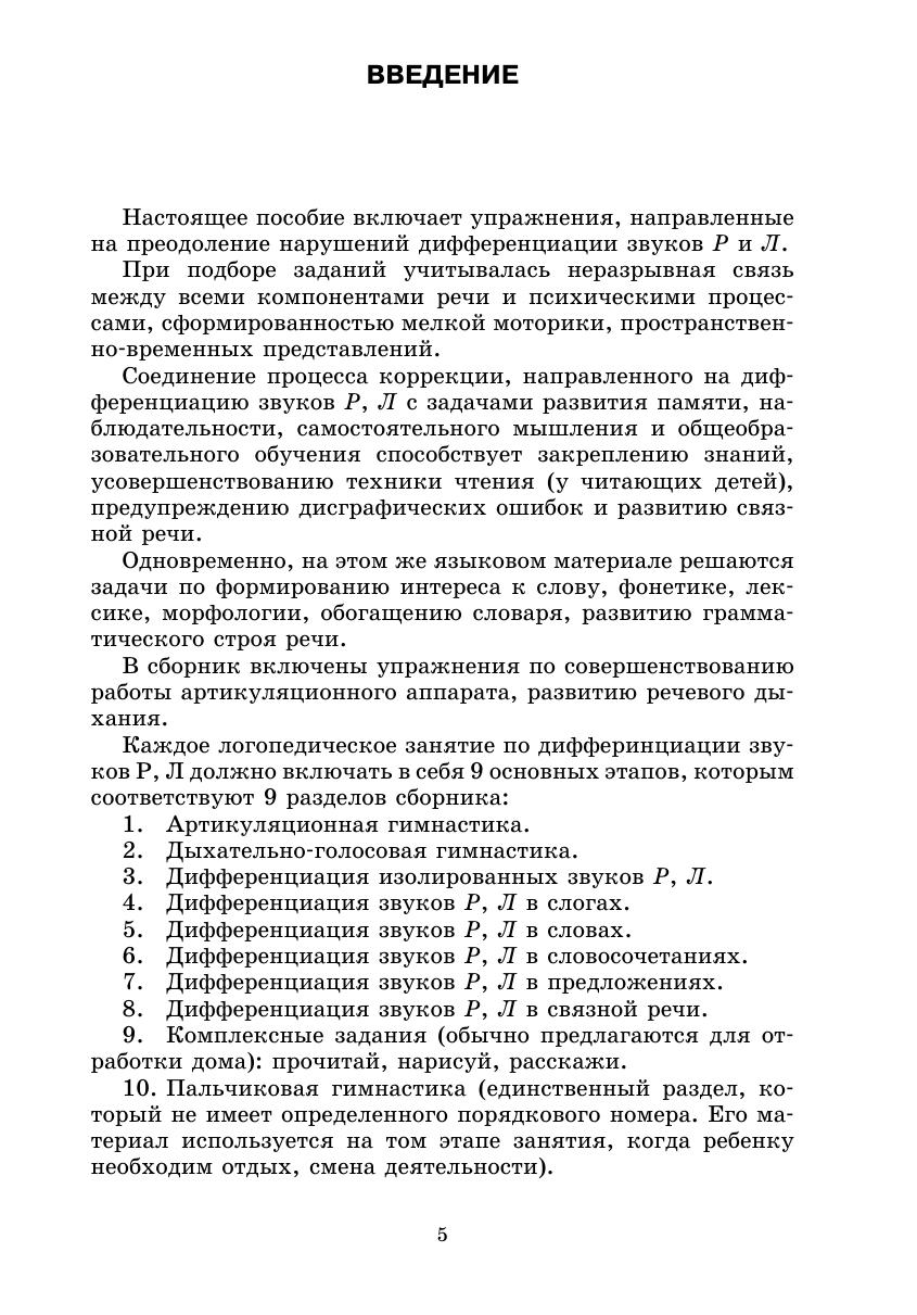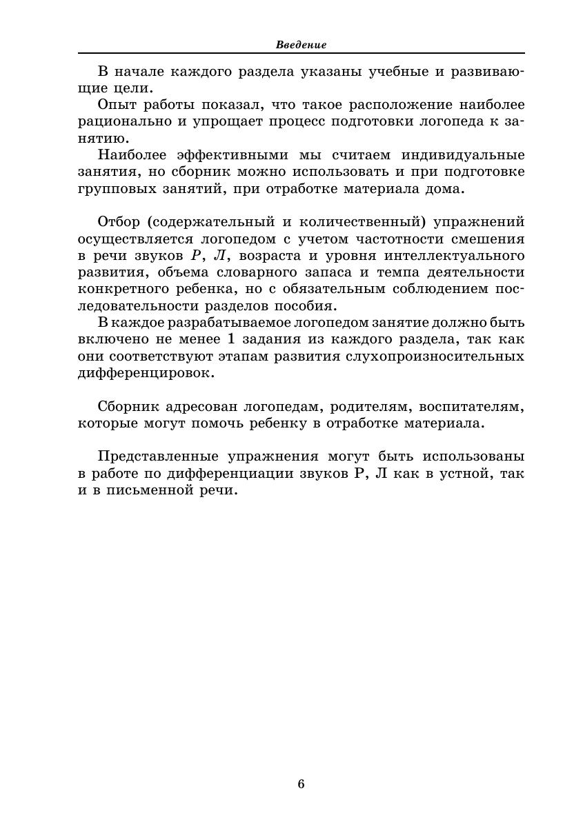 Настоящая разработка представляет собой сборник упражнений по диффренциации звуков Р, Р’ — Л, Л’. Работа в классах коррекционно-развивающего развития предполагает преодоление нарушений речи на фоне недоразвития у детей функций внимания, памяти, мышления. Учёт этой специфики заложен в систему занятий. Одновременно, на этом же речевом материале решаются задачи по формированию внимания и интереса к словам, их фонетике,