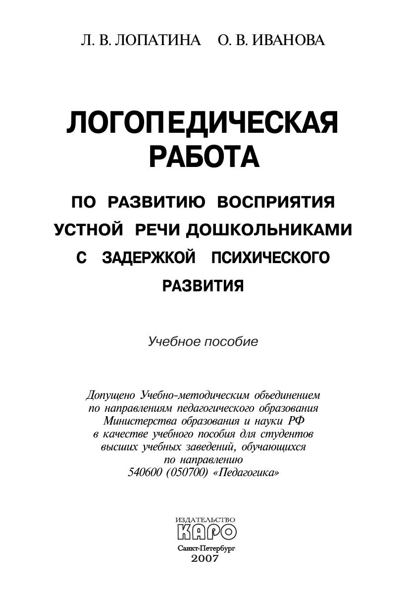 Логопедическая работа по развитию восприятия устной речи дошкольниками с задержкой психического развития