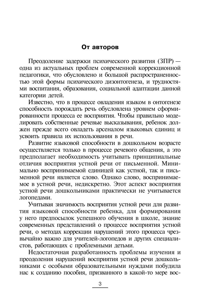 Пособие посвящено одной из сложных и малоразработанных проблем логопедии — нарушениям восприятия устной речи и их коррекции у дошкольников с задержкой психического развития (ЗПР). В пособии излагаются современные представления о процессе восприятия устной речи, о структуре речевого дефекта и особенностях понимания речи детьми с данной формой психического дизонтогенеза. Предлагаются диагностические приемы по выявлению нарушений восприятия речи, а также методика логопедической работы по развитию восприятия устной речи дошкольниками с ЗПР. Предназначено для практических логопедов и дефектологов, студентов факультетов коррекционной педагогики. Может быть использовано родителями детей с проблемами в развитии.