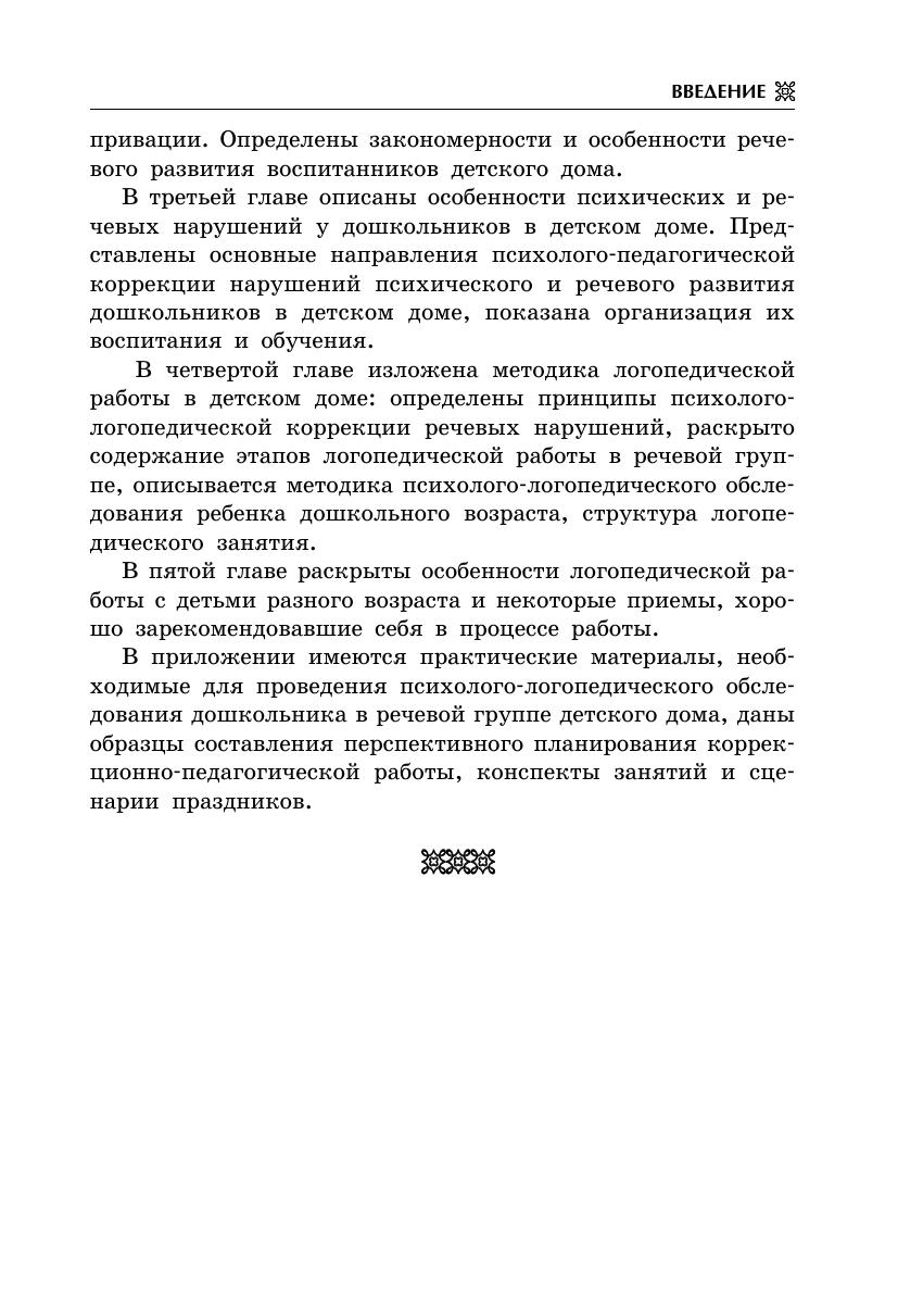 В книге представлена информация о содержании психологологопедической работы с дошкольниками, воспитывающимися в условиях детского дома. Автор раскрывает особенности психического и речевого развития этих детей, которое по ряду существенных параметров отличается от развития сверстников, воспитывающихся в семье. Подобные отклонения, хотя и менее выраженные, встречаются также у детей, воспитывающихся в неблагополучных семьях. Автор дает рекомендации по обучению и воспитанию детей и предлагает систему логопедической работы, практически примененной в условиях детского дома. Книга адресована учителям-логопедам, педагогам и психологам, работающим в детских домах, а также родителям, которые заинтересованы в гармоничном развитии своих детей.