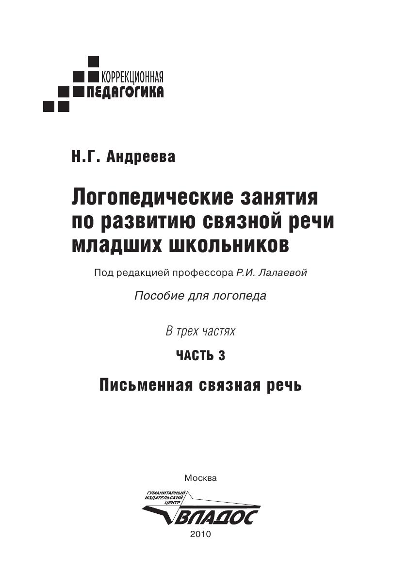 Пособие предлагает систему работы по развитию связной речи младших школьников с общим недоразвитием речи и ЗПР на третьем этапе коррекционной работы. Представленный материал собран и систематезирован на основе практического опыта учителя-логопеда общеобразовтельных учреждений.