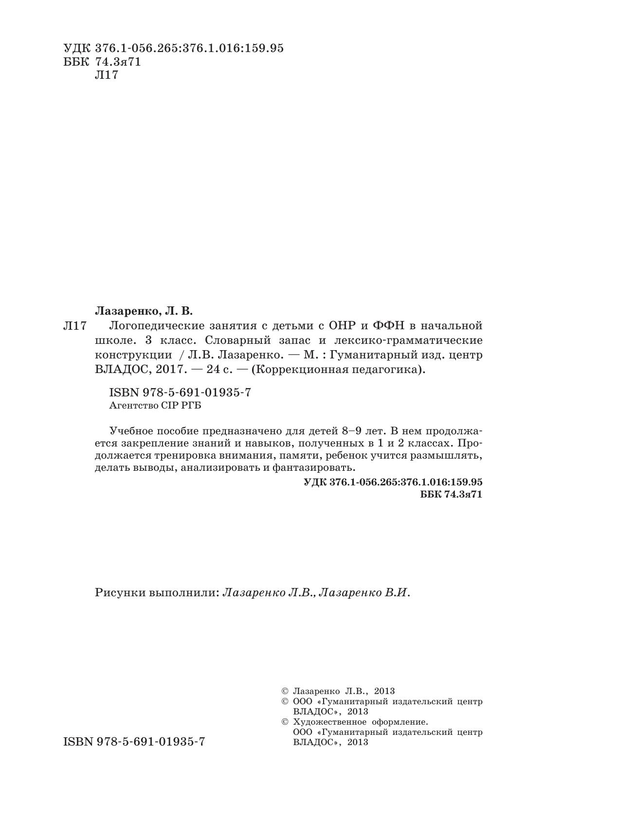 Логопедические занятия с детьми с ОНР и ФФН в начальной школе. 3 класс. Словарный запас и лексико-грамматические конструкции