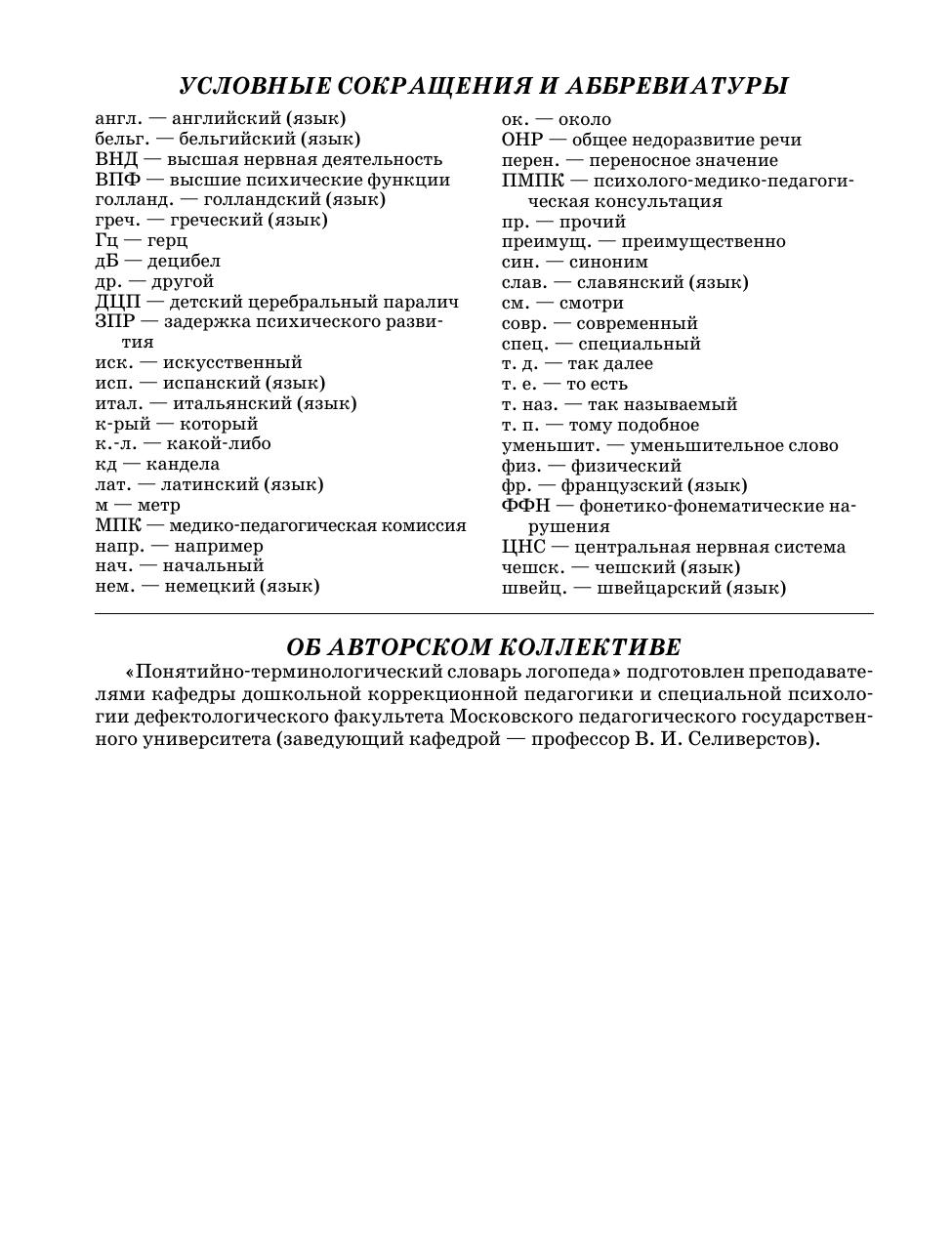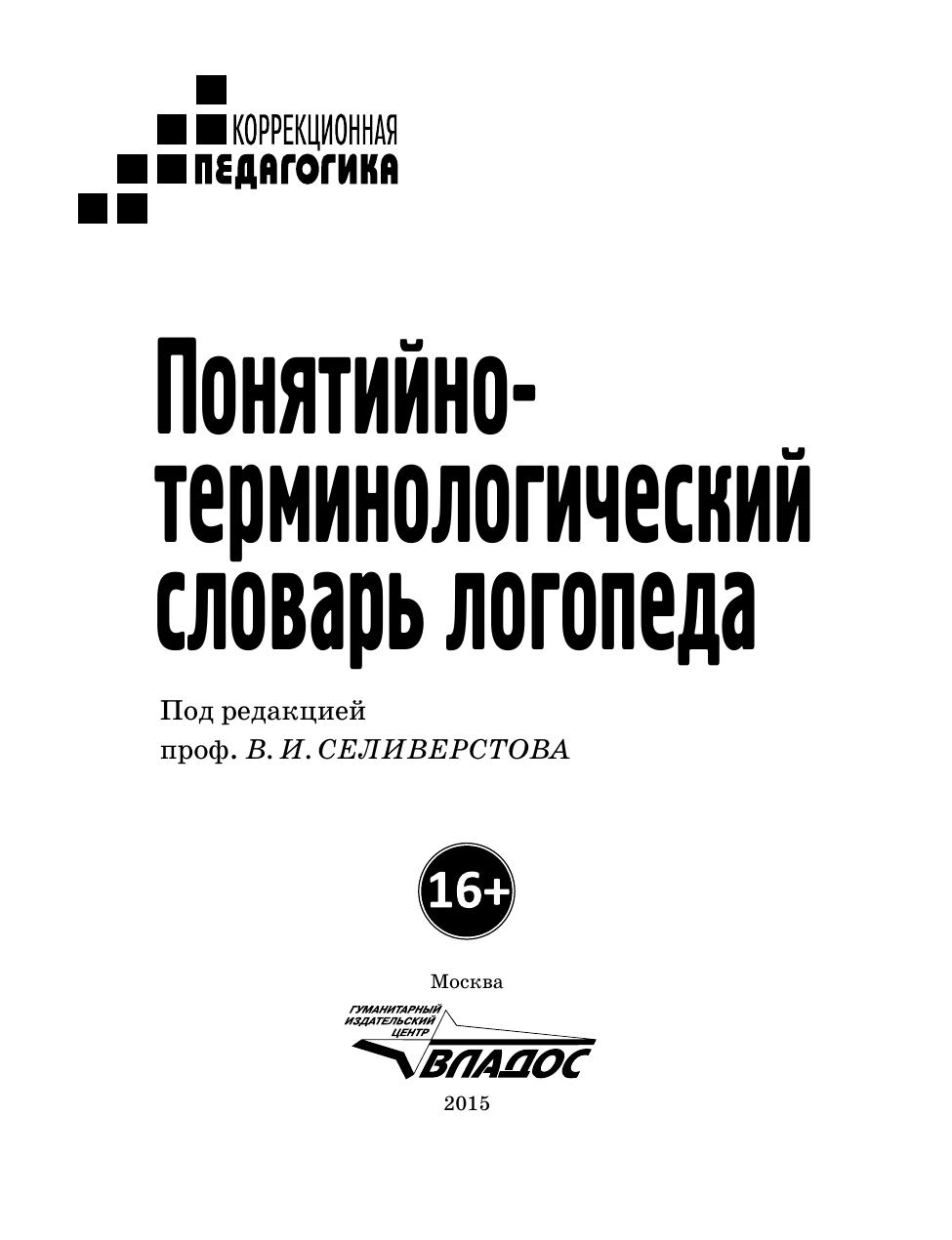 Словарь предназначен для дефектологов, работников образования, здравоохранения и социального обеспечения, а также — для студентов педвузов и средних специальных учебных заведений, для слушателей курсов повышения квалификации и переподготовки педагогических кадров.
