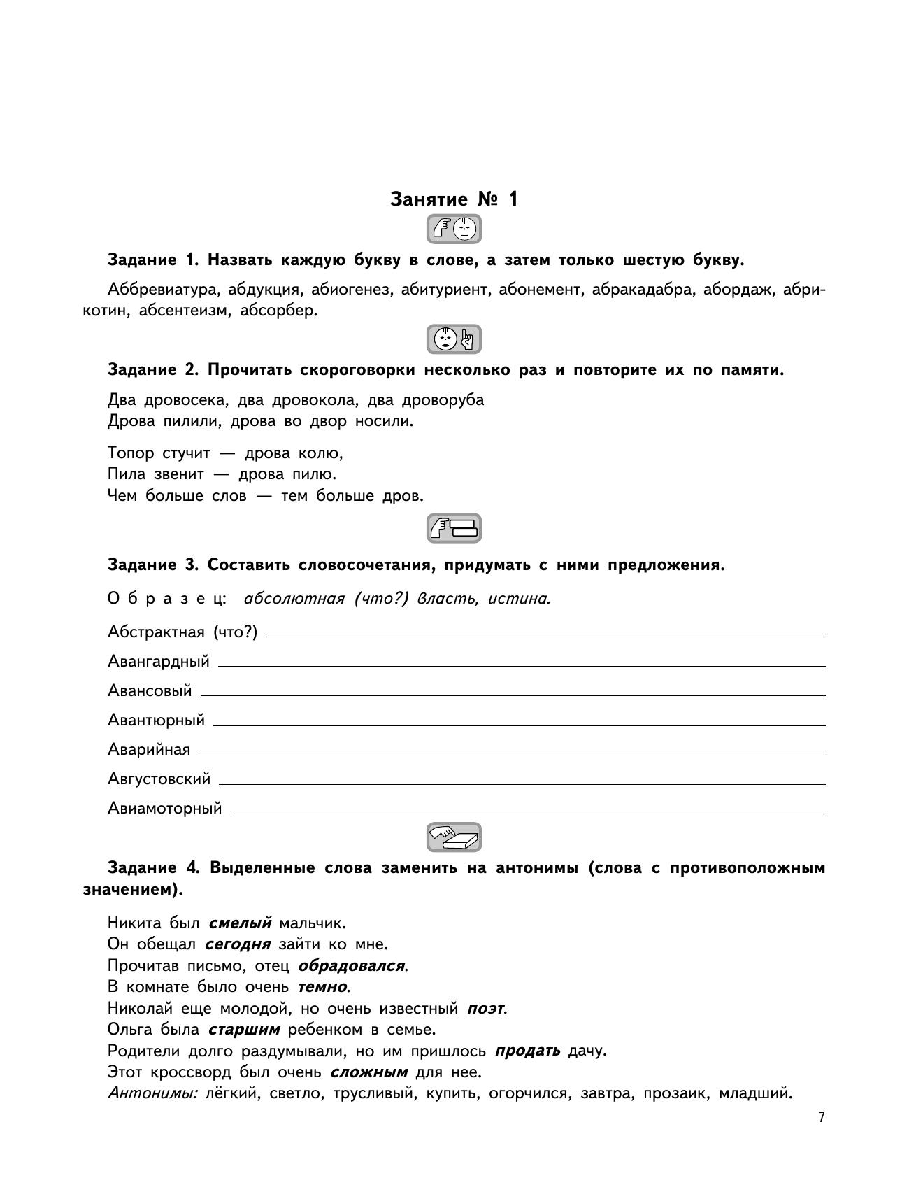 Данный практикум предназначен для школьников средней школы с проблемами в речевом развитии и взрослых с органическими поражениями мозга. Предложенные задания можно использовать как дополнительный материал к урокам русского языка, на логопедических занятиях с детьми и больными с афазией.