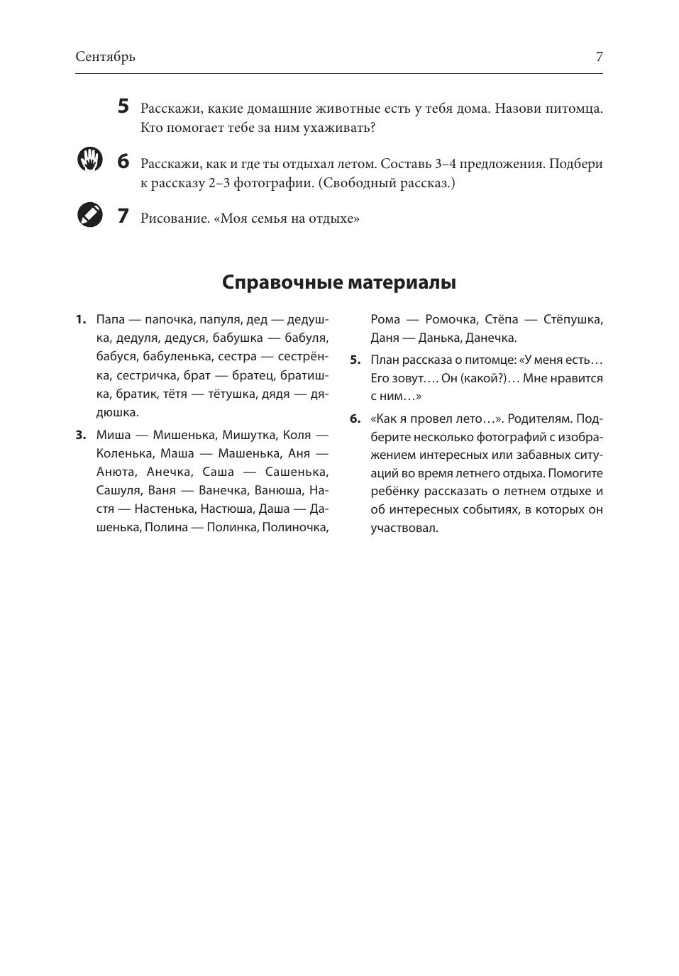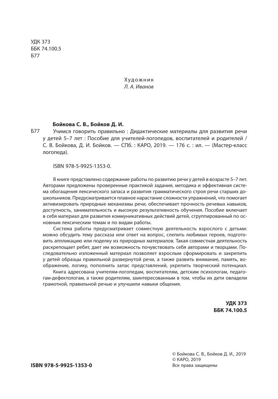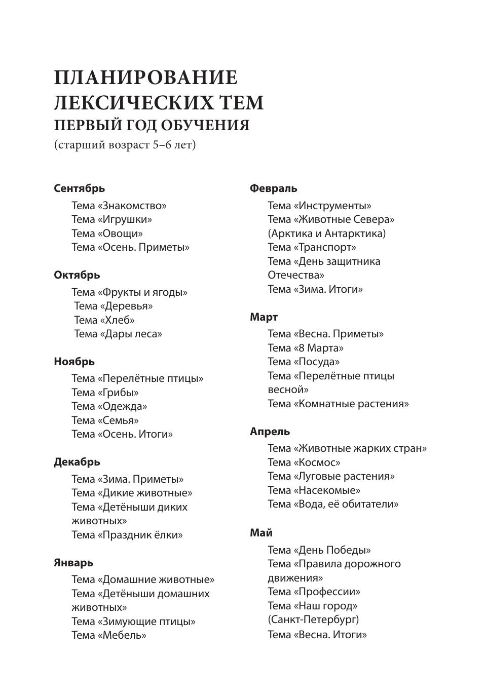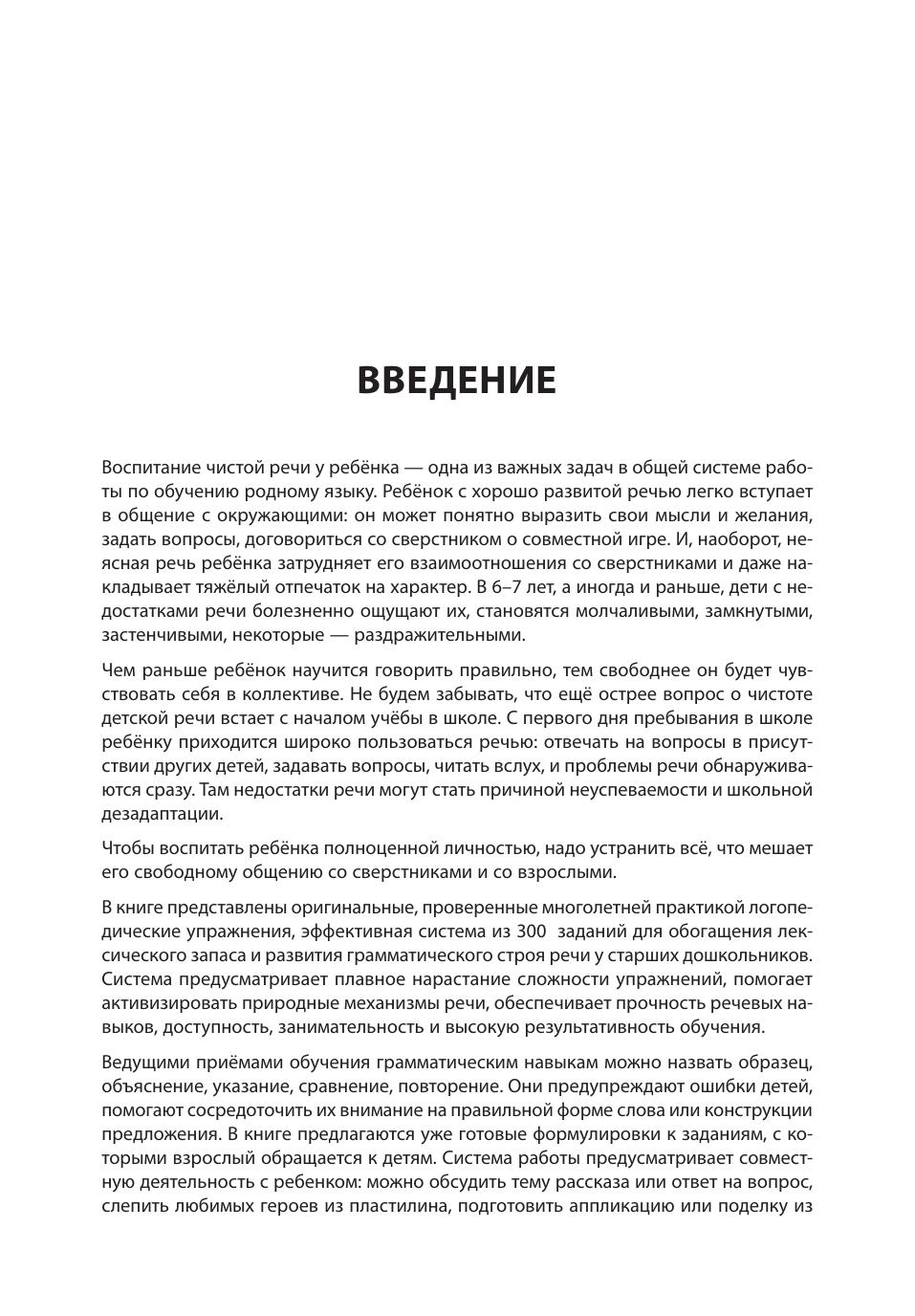 В книге представлено содержание работы по развитию речи у детей в возрасте 5–7 лет. Авторами предложены проверенные практикой задания, методика и эффективная система обогащения лексического запаса и развития грамматического строя речи старших дошкольников. Предусматривается плавное нарастание сложности упражнений, что помогает активизировать природные механизмы речи, обеспечивает прочность речевых навыков, доступность, занимательность и высокую результативность обучения. Пособие включает в себя материал для развития коммуникативных действий детей, сгруппированный по основным лексическим темам и по видам работы. Система работы предусматривает совместную деятельность взрослого с детьми: можно обсудить тему рассказа или ответ на вопрос, слепить любимых героев, подготовить аппликацию или поделку из природных материалов. Такая совместная деятельность раскрепощает ребят, дает им возможность почувствовать себя авторами и творцами. Последовательно изложенный материал позволяет взрослым сформировать и закрепить у детей образцы правильной развернутой речи, а также развить внимание, память, воображение, логику, пополнить запас представлений, укрепить творческий потенциал. Книга адресована учителям-логопедам, воспитателям, детским психологам, педагогам-дефектологам, а также родителям, заинтересованным в том, чтобы их дети овладели грамотной, правильной речью и улучшили навыки общения.