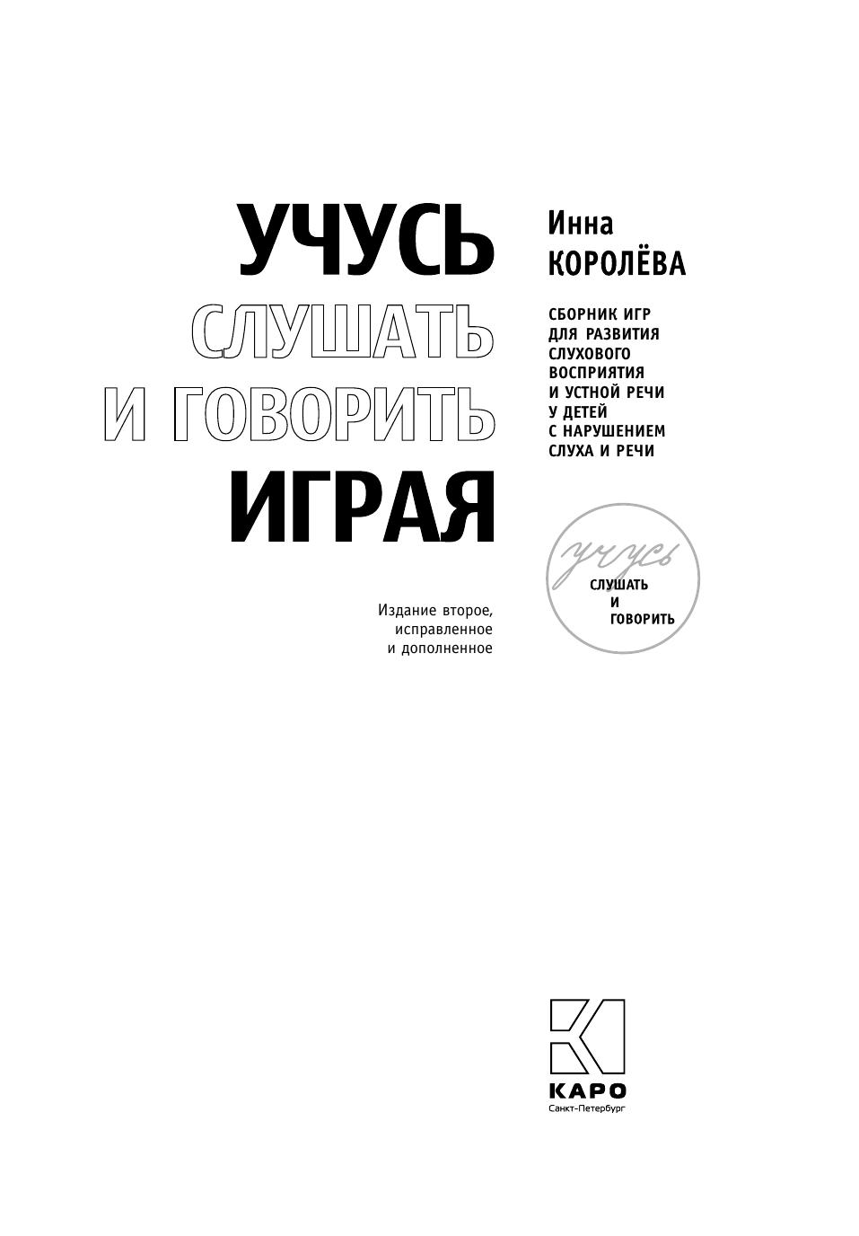 В сборник включены игры, в которые можно играть не только дома и на занятиях, но и во время прогулки или стоя в очереди. В эти игры с детьми могут играть родители, а в детском саду или в школе — воспитатели. Сурдопедагоги, логопеды, психологи могут использовать их на занятиях по развитию слуха, речи и речевых коммуникативных навыков. Игры предназначены для детей разного возраста и с разным уровнем слухового и речевого развития.