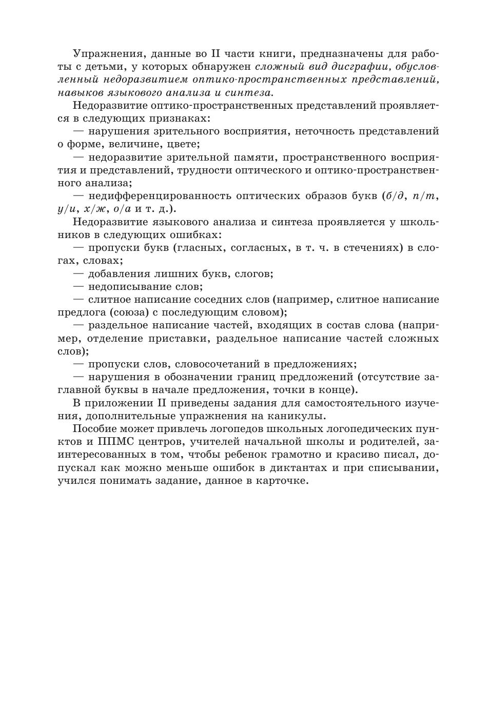 В пособии представлено 159 комплексов разнообразных заданий для учащихся 2–3 классов общеобразовательной школы, у которых имеются нарушения письменной речи различных видов или «ошибки роста», то есть трудности в усвоении правил русского языка.