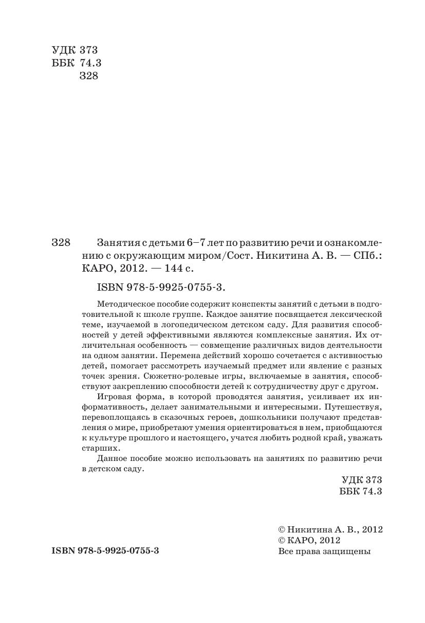 Занятия с детьми 6–7 лет по развитию речи и ознакомлению с окружающим миром