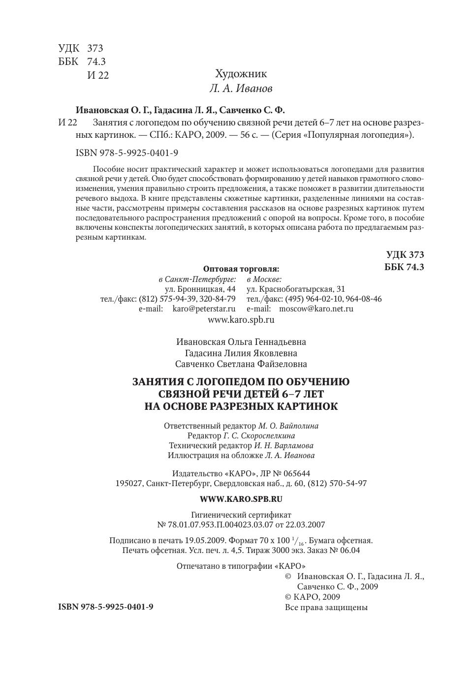 Авторы: Ивановская О.Г., Гадасина Л.Я., Савченко С.Ф.